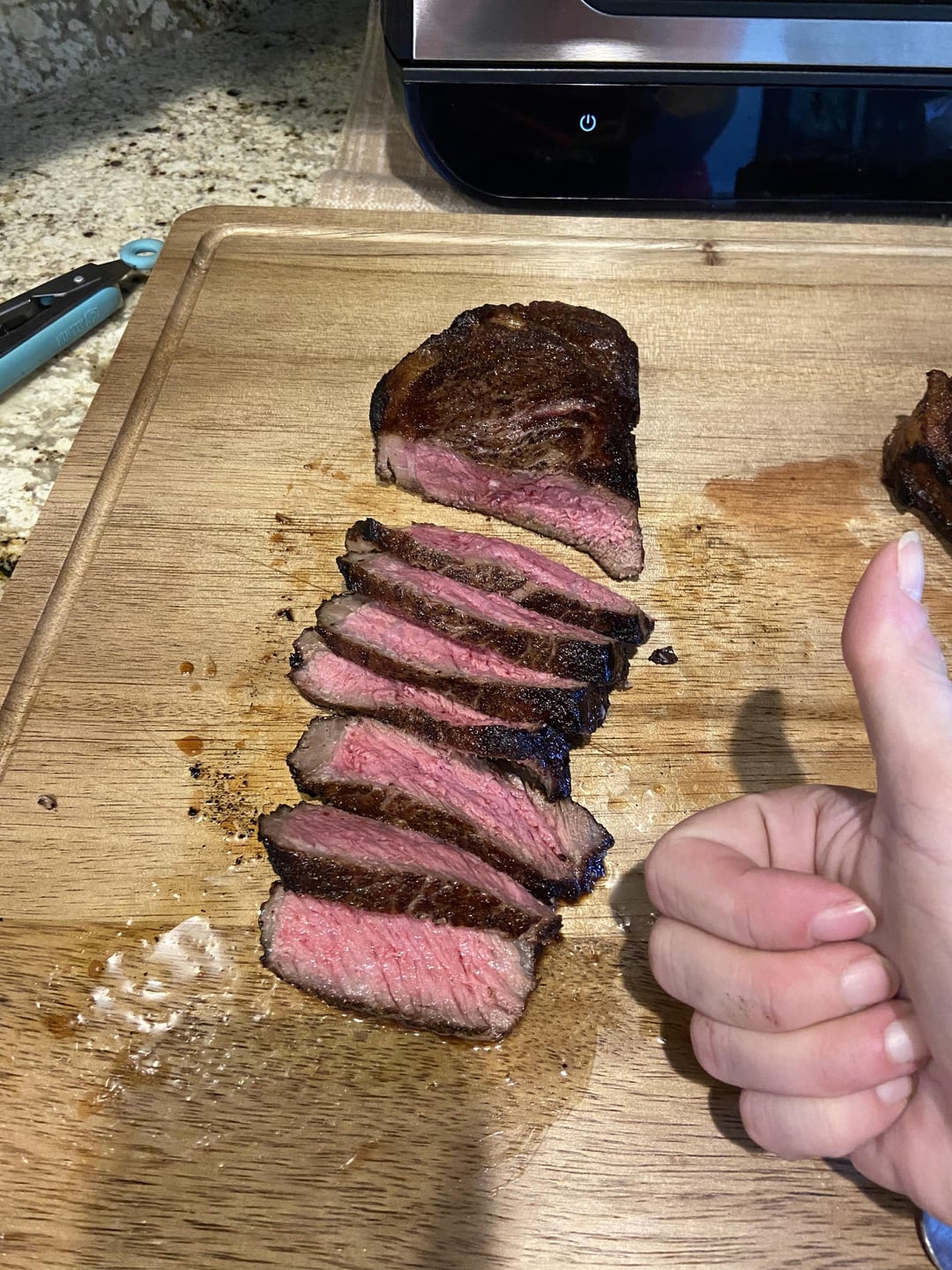 I usually mislike reverse sear for ribeye, but for this cut, it’s appropriate. Looks great.