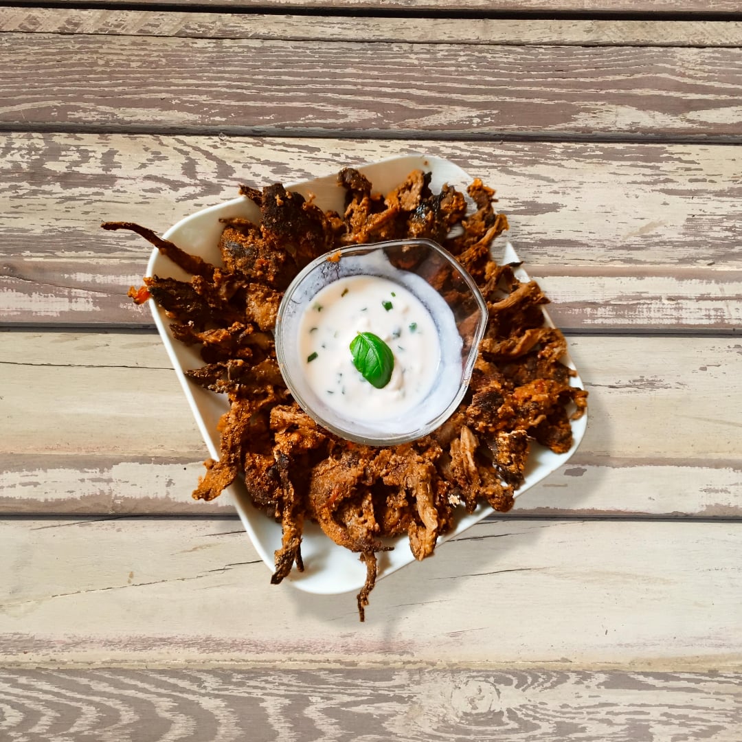 Recently, I've experimented with oyster mushrooms as a vegan alternative to chicken wings, and they turned out like this.