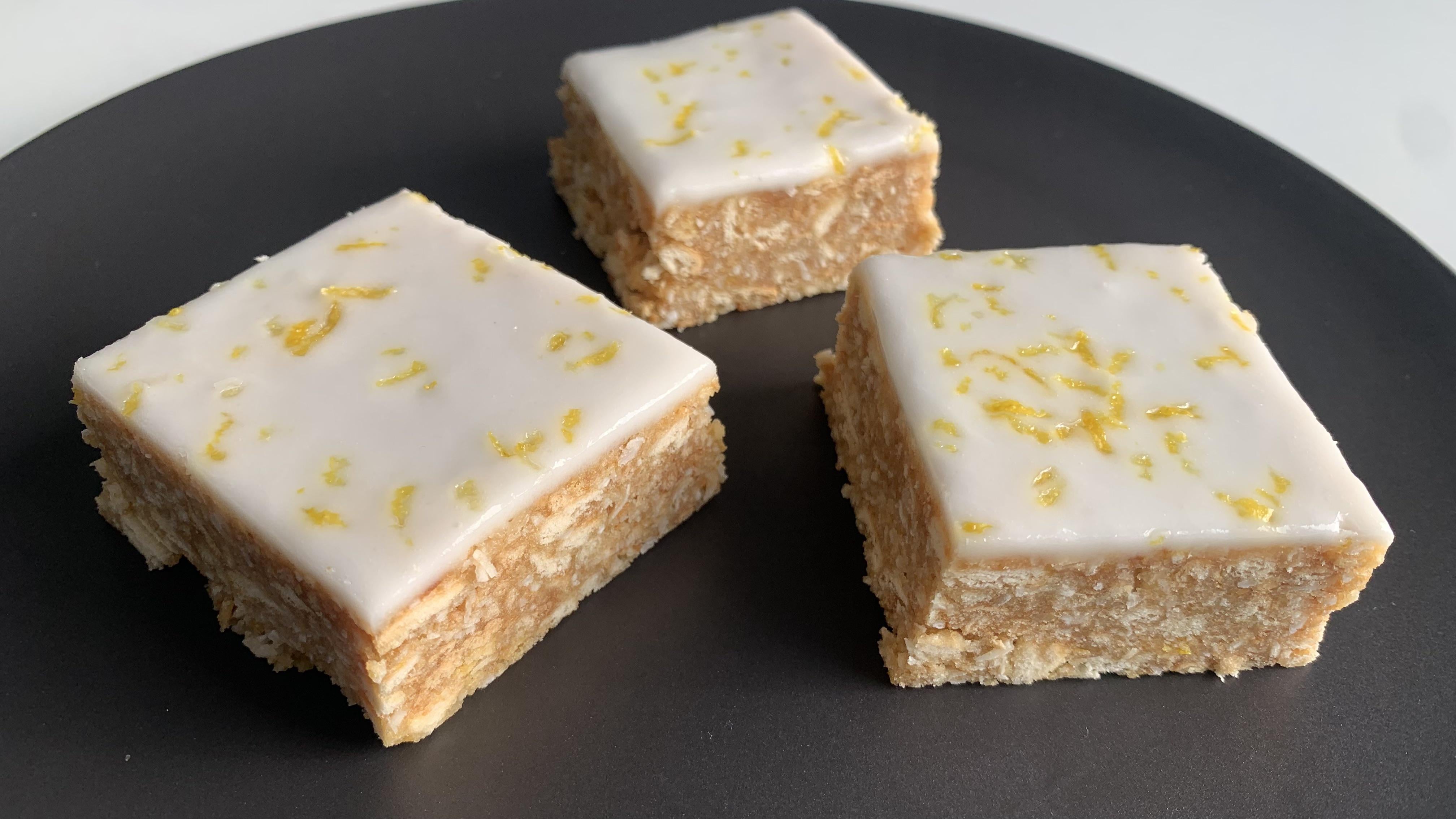 8. Slice into squares and then enjoy this lemony treat. Great for morning or afternoon tea or in lunchboxes.