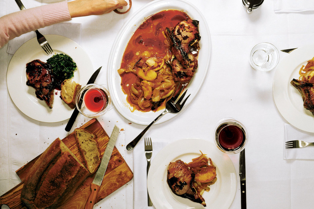 This is a home cook’s take on a restaurant special, with shortcuts baked into the recipe. I learned the original at the elbow of Marc Murphy, the chef and an owner of Landmarc in Manhattan, and then adapted it for use in the home kitchen. (He grills. I pan-roast.) Brining gives the pork an incredible flavor, one amplified by the accompanying caramelized onions and apples. A drizzle of mock Bordelaise over the top elevates the whole enterprise: it’s a meal for date nights and celebrations.