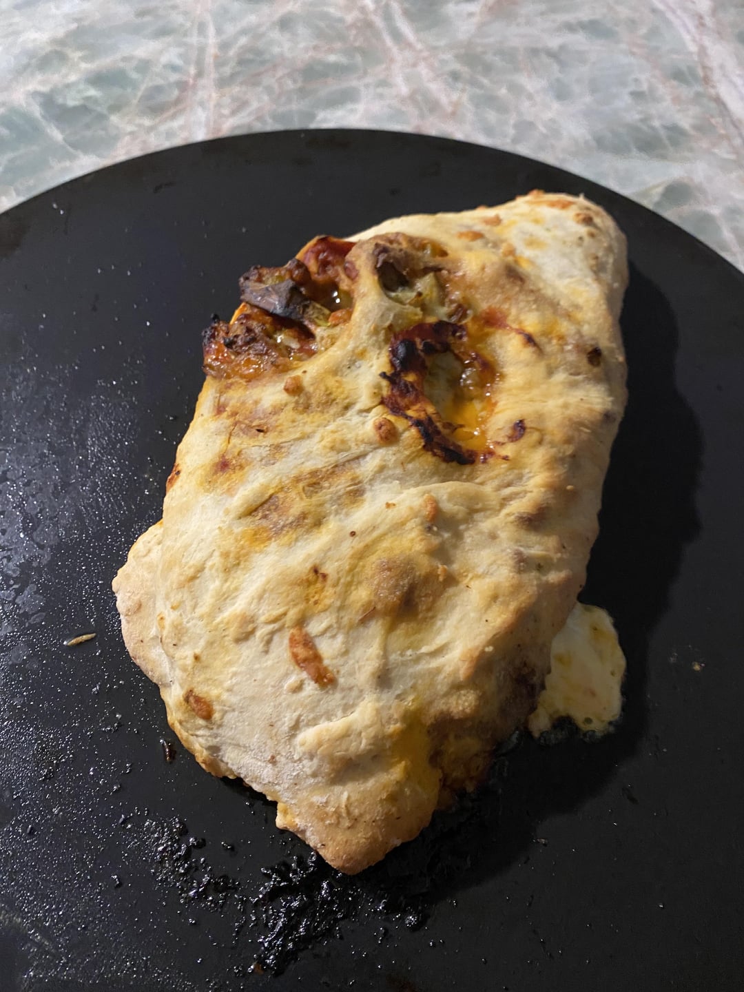 “I decided to make calzones instead because y’all are my best friends. Don’t worry about the garlic knots or caprese salad I talked about, this is much better. You can Venmo me later. Cheers!”
