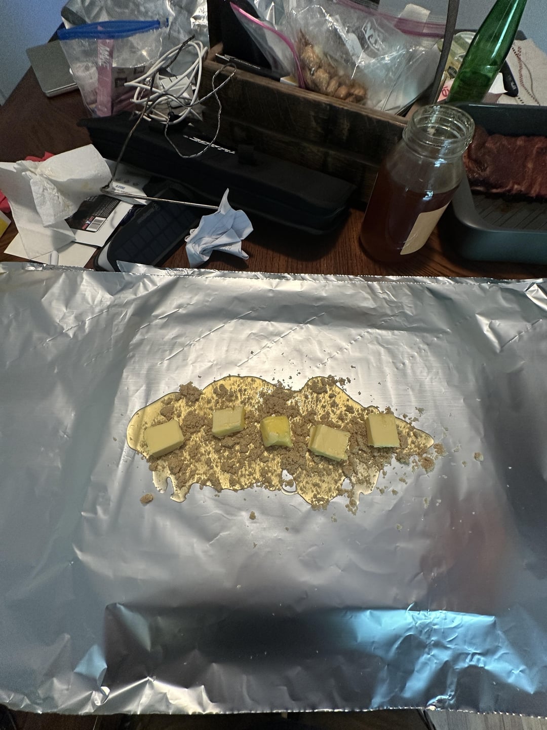 L-R: Meat Church honey hog bbq, gospel, and voodoo. 4 hours at 250, wrapped in foil with some honey, butter and light brown sugar for 1 1/2.