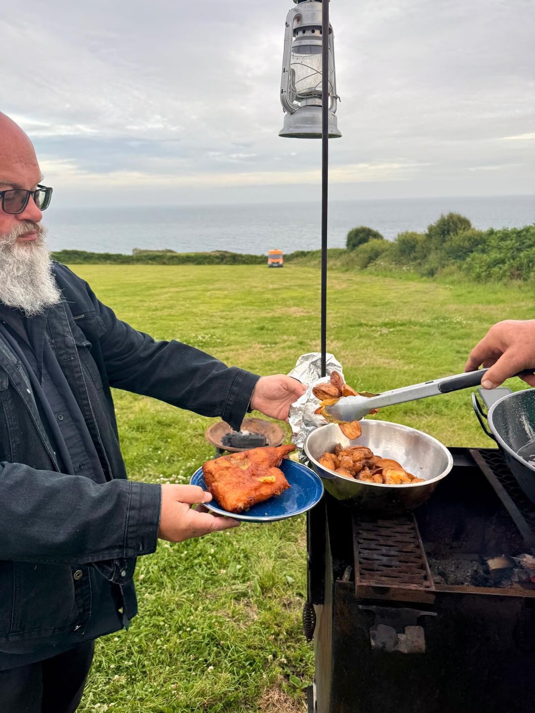 Nothing like home made beer battered fish and chips – cooked right next to the sea. Lovely place to camp.