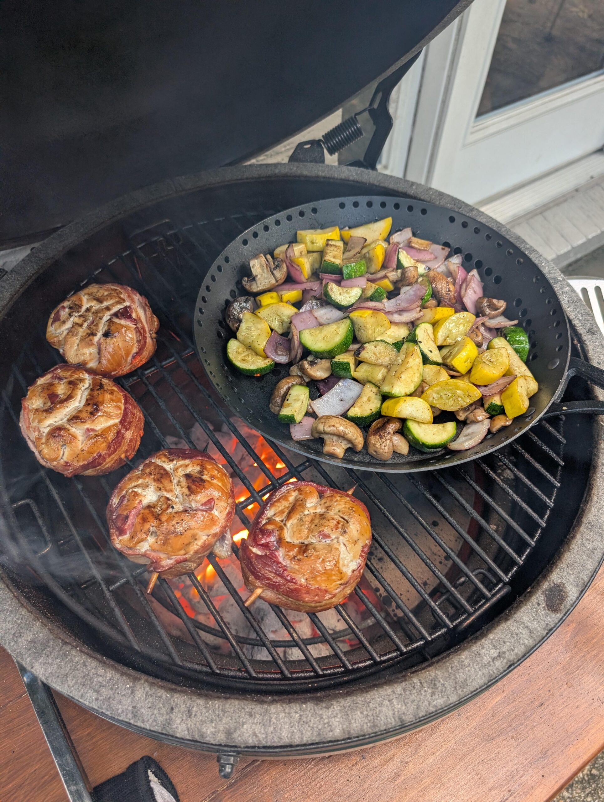 1. Cooked up chicken swirls and veggies on the BGE for dinner.