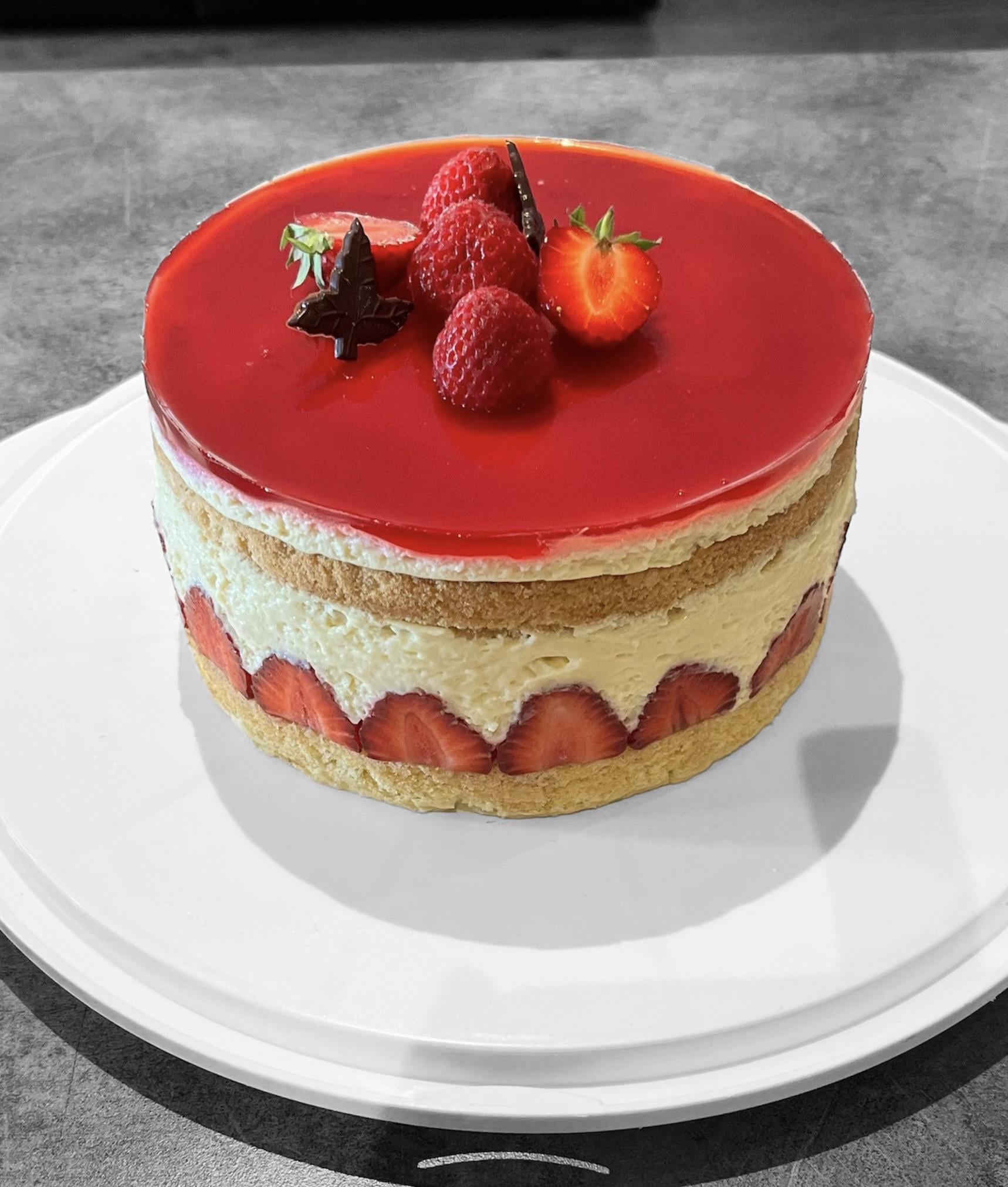 I went to harvest strawberries on Sunday so I made this cake bursting with strawberries.