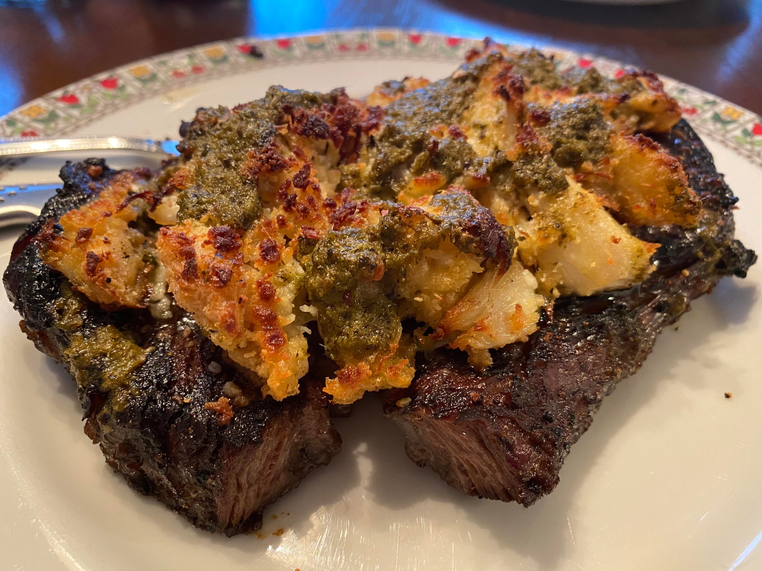 12oz choice ribeye w/crab and pesto butter