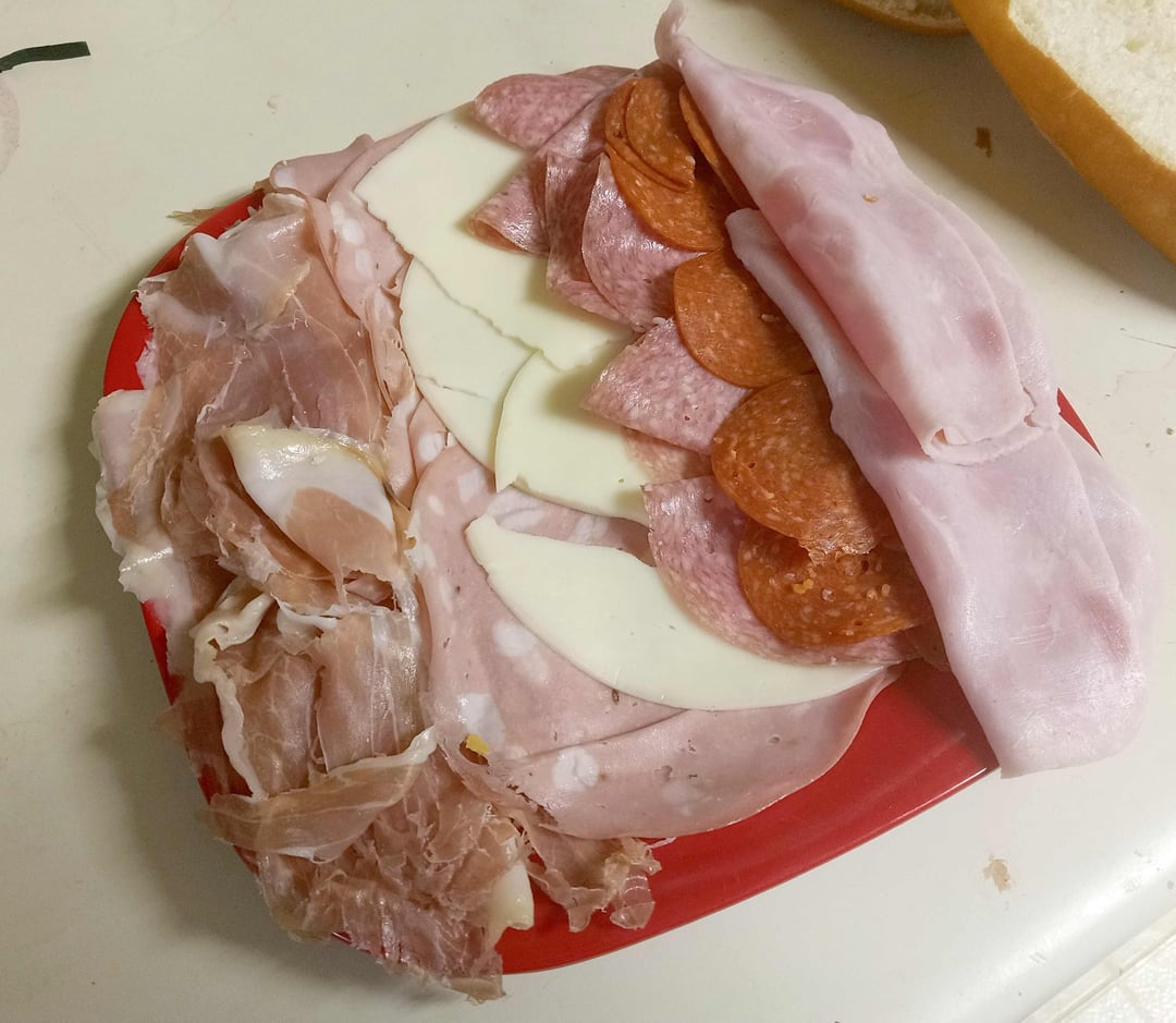 Proscuitto, salami, ham, pepperoni, mortadella, and sharp aged provolone all shaved thin except for the baked ham. Ran out of tomato for the second one so used giardiniera instead. Both with extra virgin grapeseed oil and <gasp> homemade mayo using virgin olive oil.