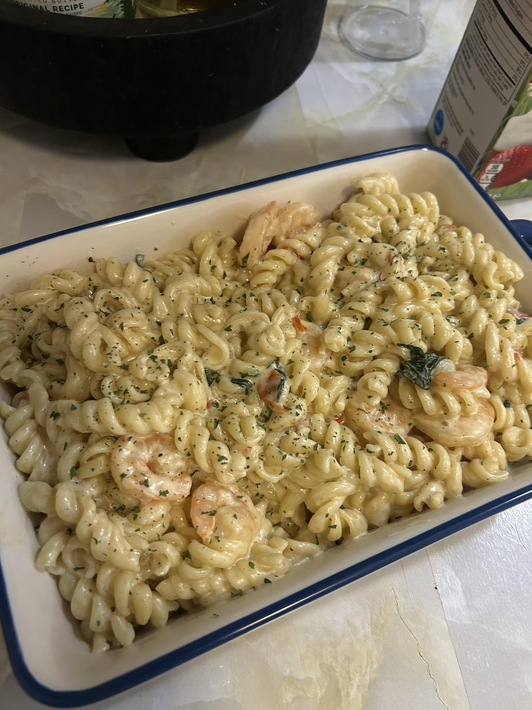 I’ve never heard of a human disliking shrimp pasta (btw looks amazing so hungry now)