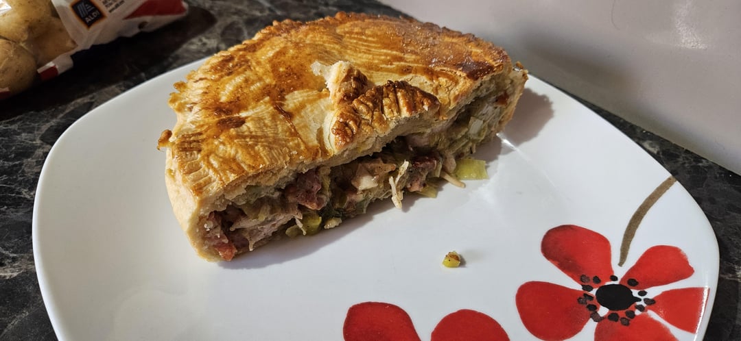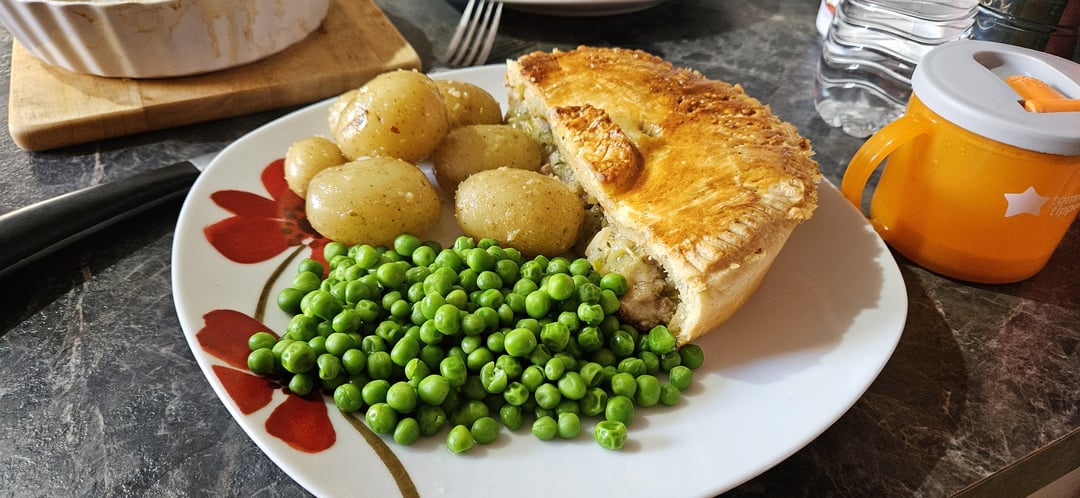 Chicken, bacon and leek pie with garlic butter new potatoes and peasby revolut1onname Write A CommentYou must be logged in to post a comment.