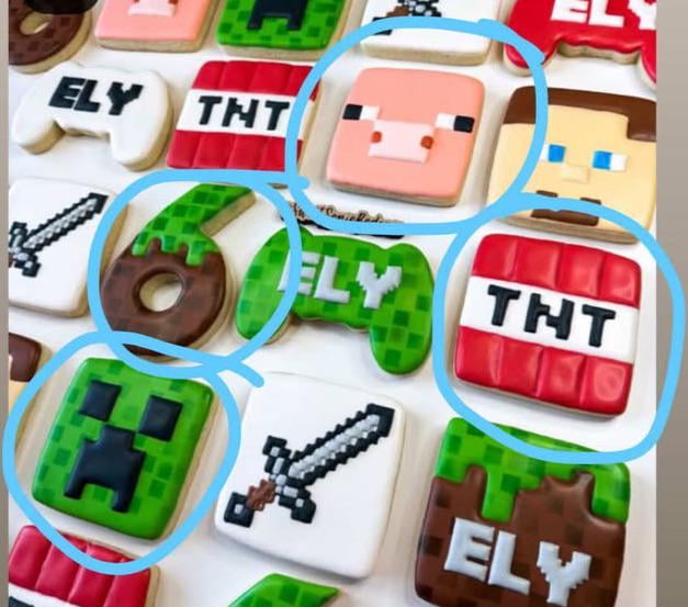 You can very easily do these with edible markers. You’ll get crisp black lines for the TNT and the little pig eyes. You can also get different shades of green and brown. Hand drawing would be the easiest way to go if you’re not confident or have an airbrush. You can get them on Amazon if you need them to be there right away, but I absolutely recommend Tweets Cookie Connection. They’re like the gold standard of cookie pens, and no one can convince me otherwise.