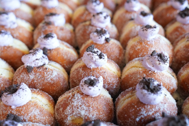 A: Right now they are lining up for my brioche donuts. It’s a hand-rolled donut that we make every morning. My husband and my brother hand-roll it early in the morning. Then we have to proof before we fry. Once it’s done, we pipe it. We fill it with our in-house-made filling, and they come in different flavors from ube Oreo, lychee raspberry, to chocolate, vanilla.
