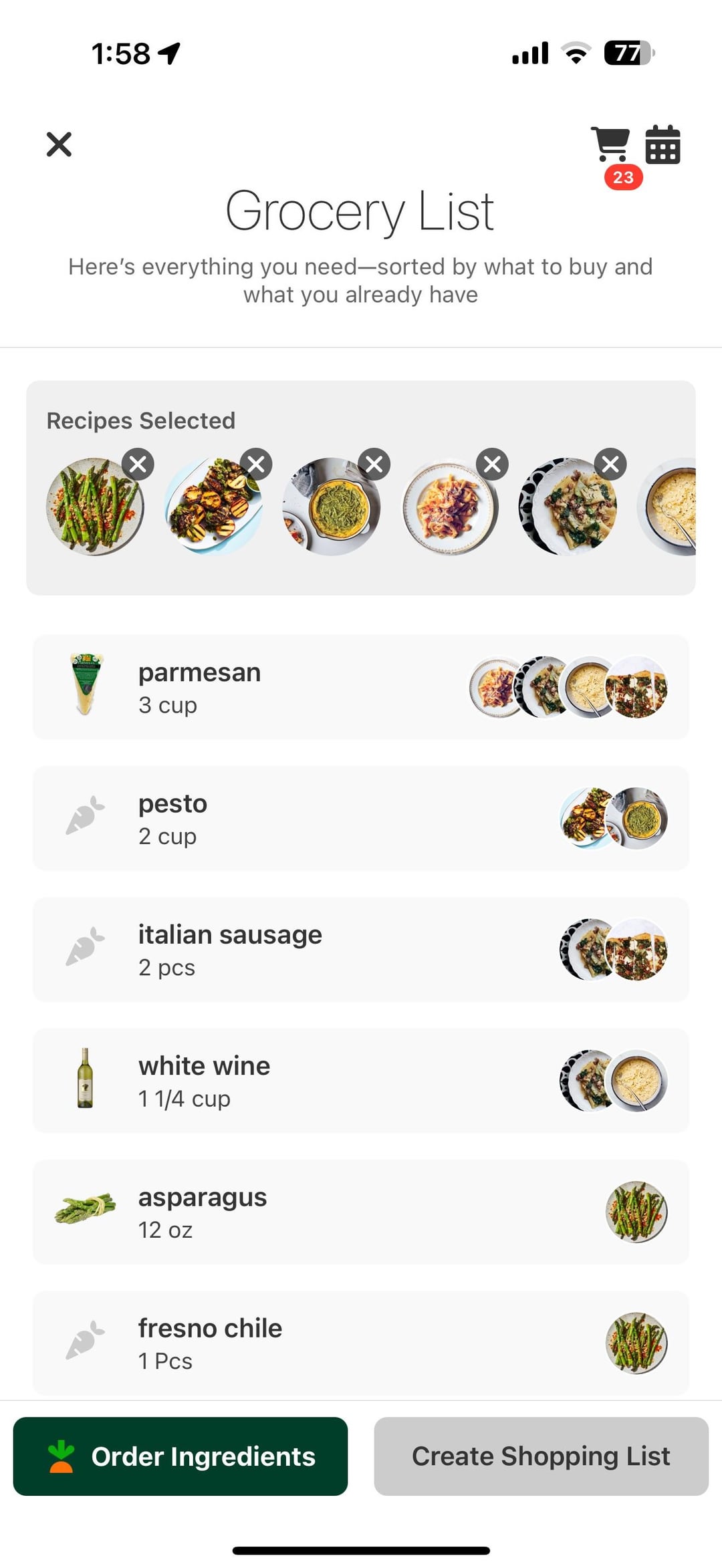 Example: I picked a mushroom pasta. It immediately suggested a stir-fry and a flatbread that also used mushrooms, garlic, and parsley, things I normally let go bad after one meal. I cooked all three over the week, and for the first time in forever, I used everything I bought.