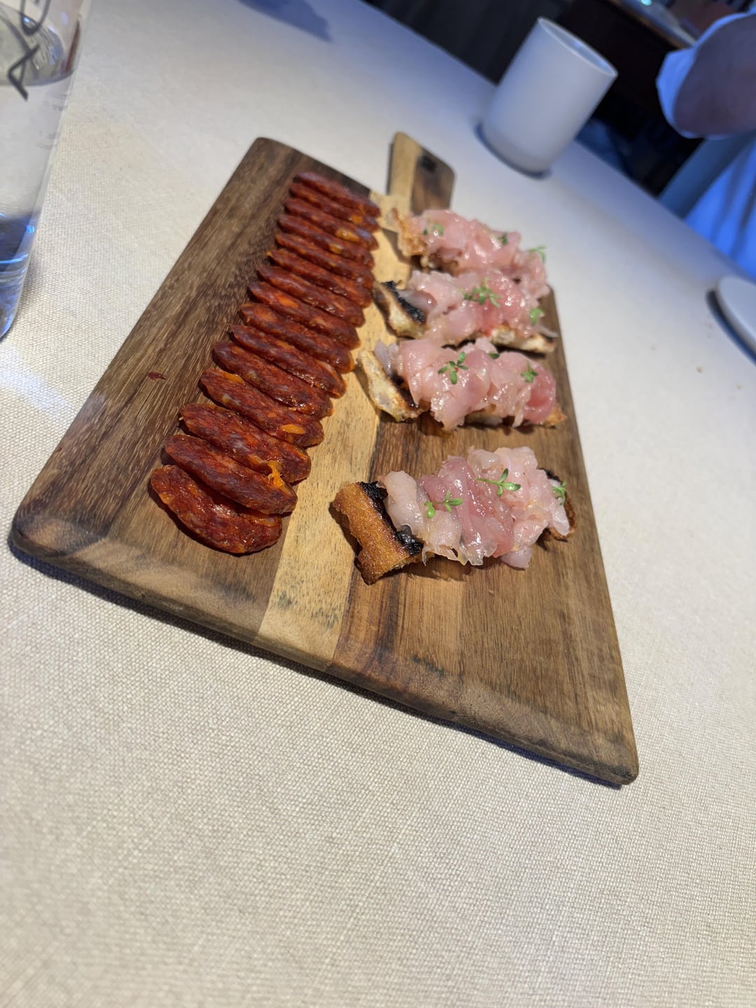 Extraordinary house made chorizo with a very soft and sensual texture as well as smoked tuna over toast.