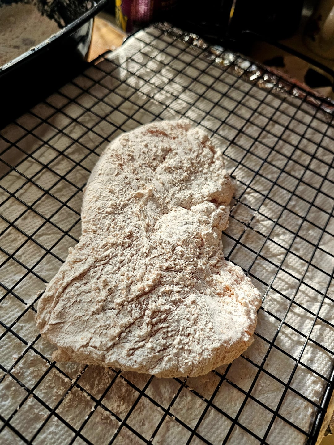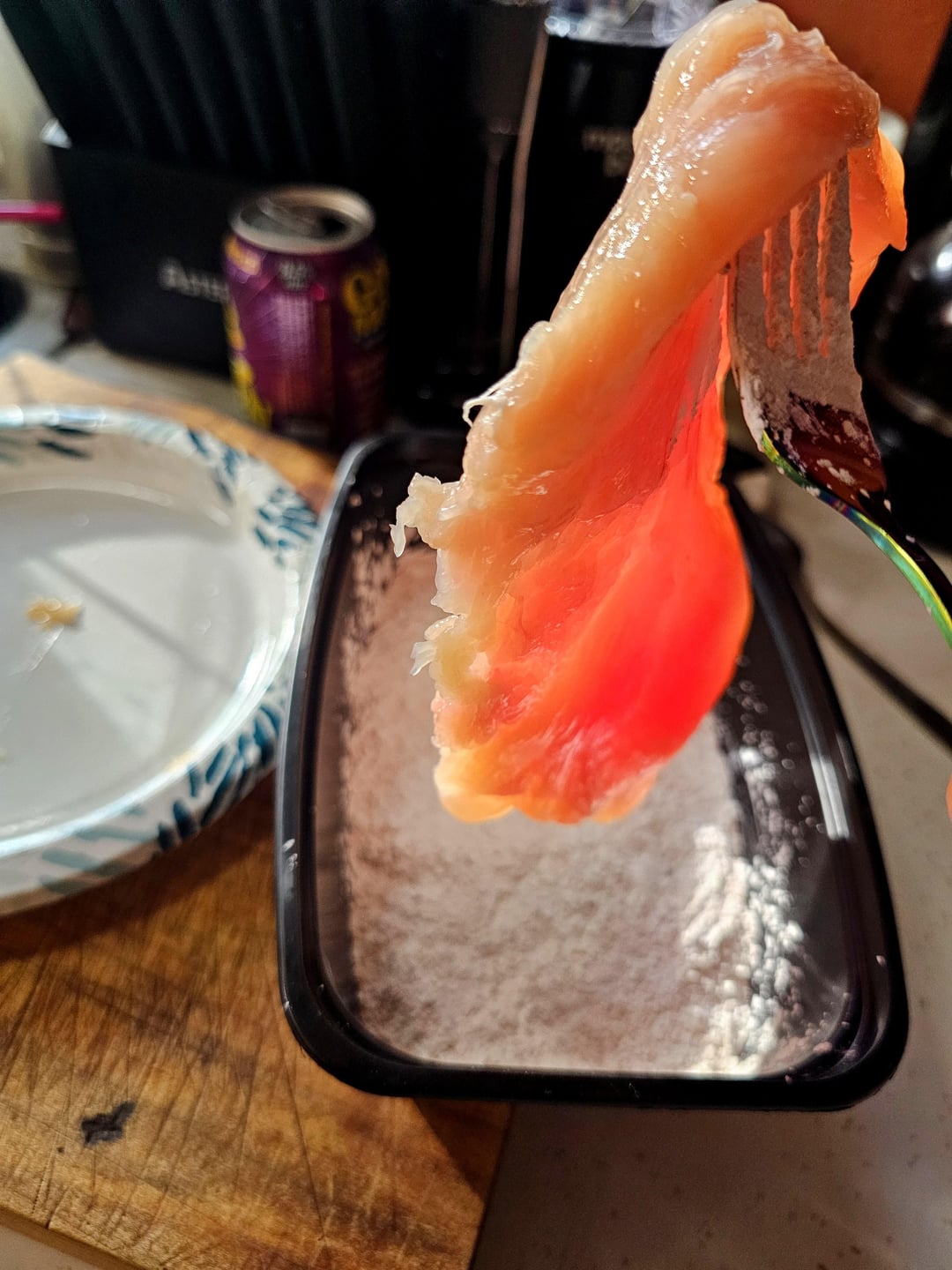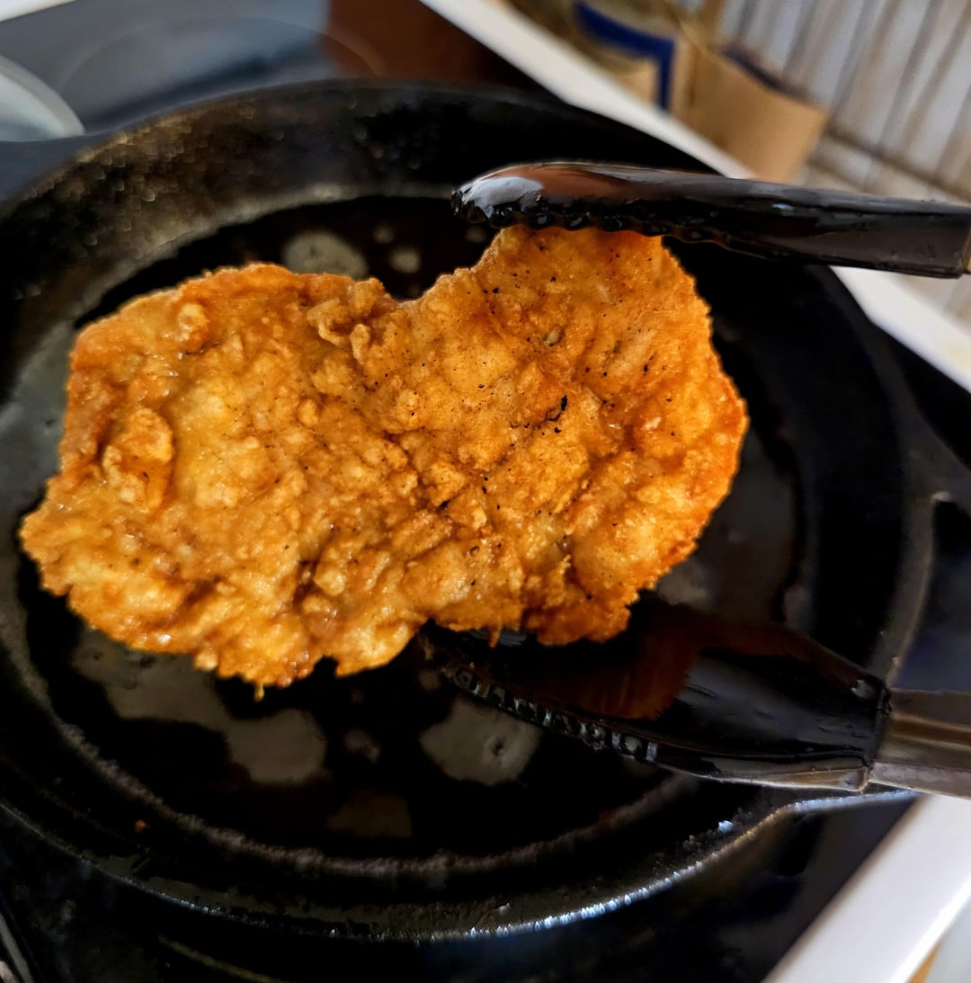 This was pretty quick and simple, chicken dipped in cornstartch then fried until crispy and double dipped in hot sauce.