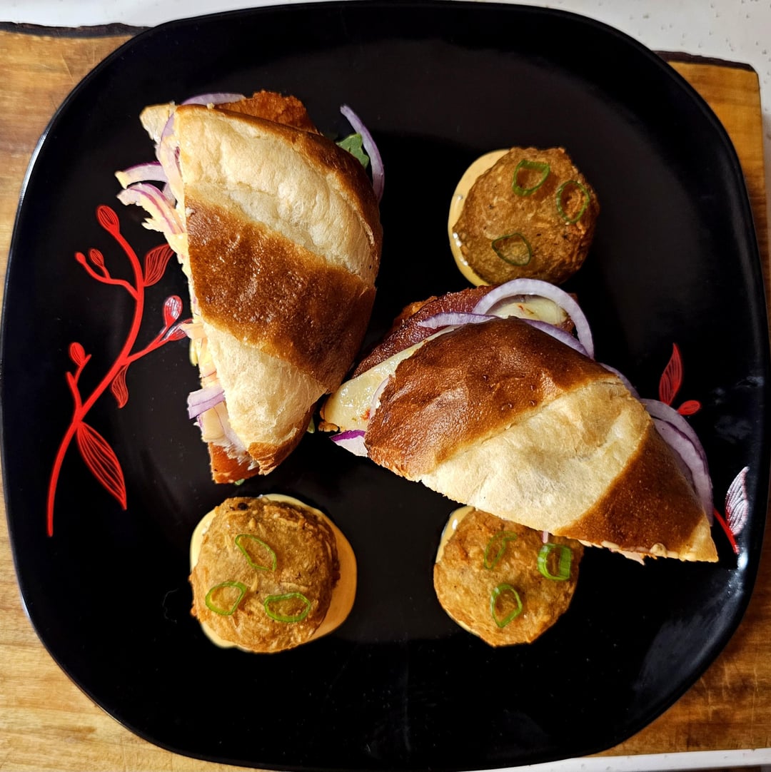 The potato balls need some tweaking but they were thought up at the last minute, sandwich was amazing though 🤣