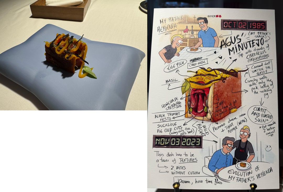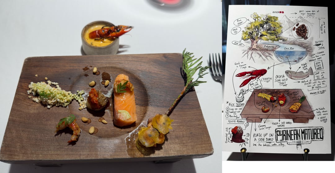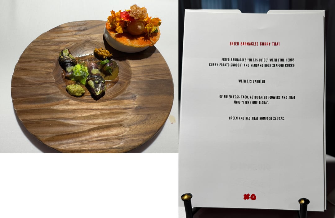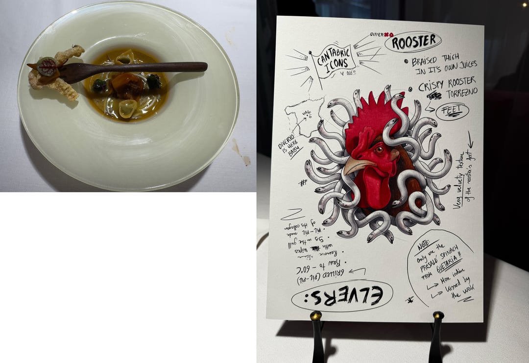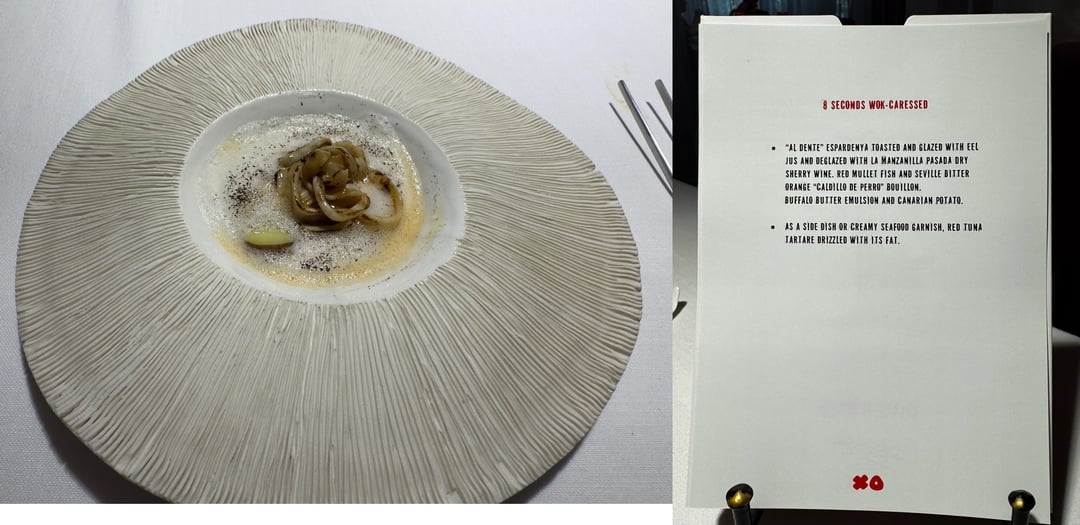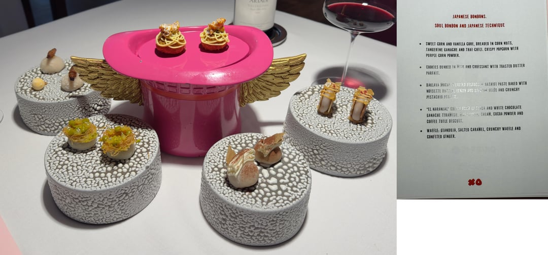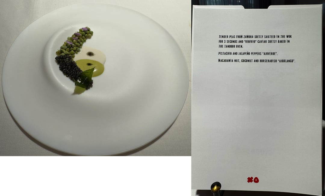 Food: Spain mixes with Asia, Latin America, Mexico, flavors from childhood memories, tons of fun. Very flavor forward, textures, contrasts, and temperatures were all perfect. We had 0 misses. Maybe 1 dish I thought was just "good" the rest really wowed us. I can only imagine those looking for subtlety might be overwhelmed. I can't really go in to each dish and how incredible they were, but some hightlights: