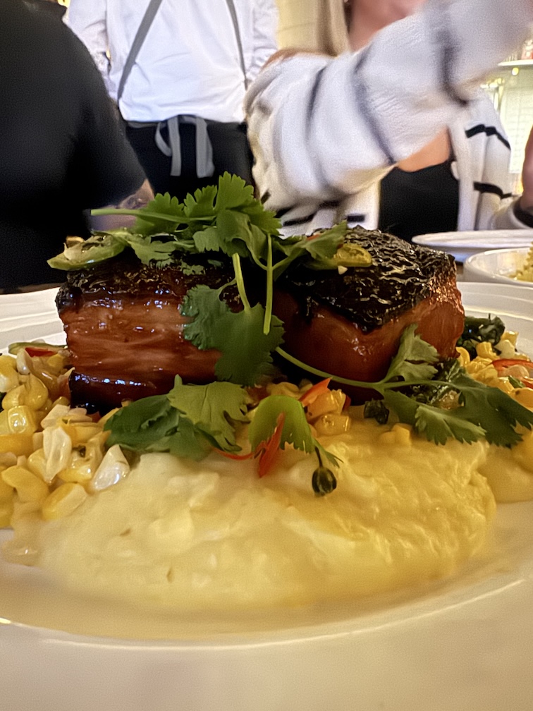 The pastas are so good, you may have to come back for the main courses—which were glorious in their own rite. Beautiful execution on the smoke pork belly with a sweet balsamic agrodolce sauce, served on polenta with herbs and corn. And only $28! Desserts are excellent as well with a moist carrot cake slice served with brown butter ganache and miso caramel, and a perfect tiramisu served in a dish.