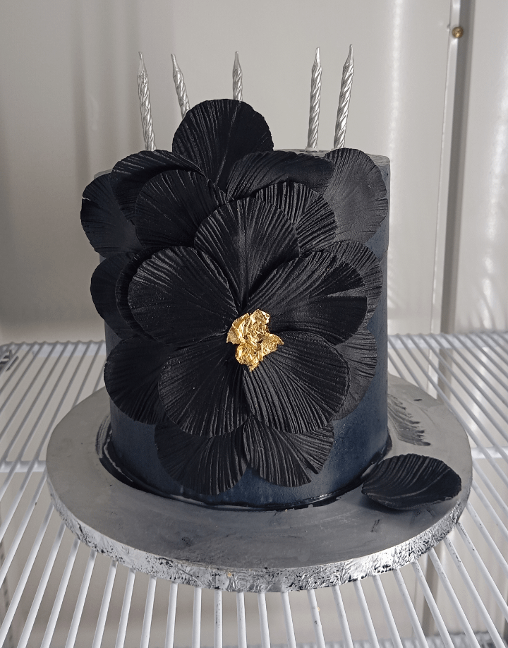 She wanted the something in gothic tones. The cake also needed to be light so had to frost it with whipped cream. Inside, the flavor was Butterscotch Caramel.