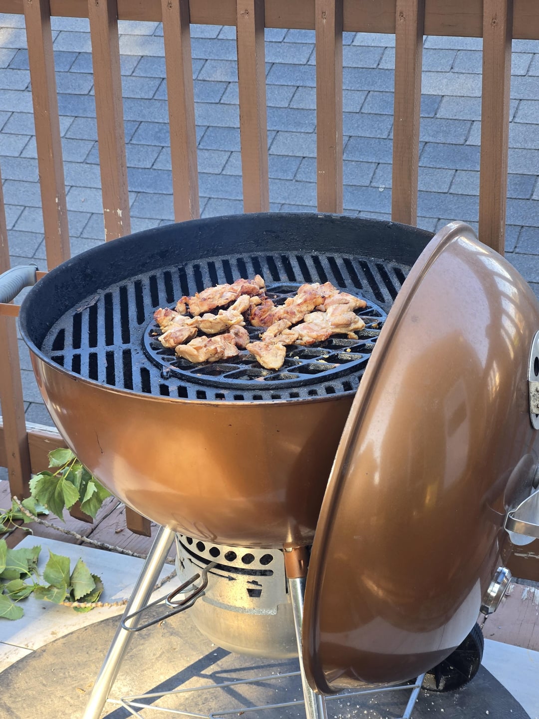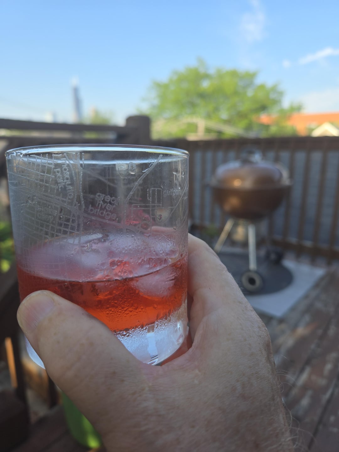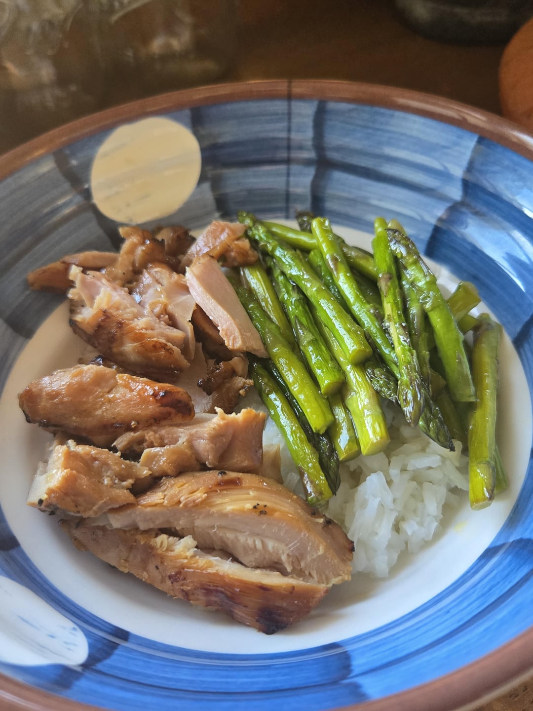 Grilled what I've heard called Seattle-style chicken teriyaki, asparagus and rice. Enjoying a variation of a Negroni, with vodka, dry vermouth and campari.
