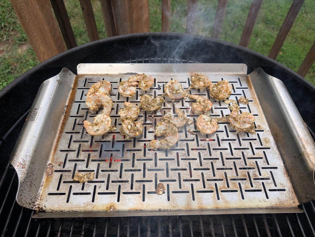 Low Carb Grillin' on the Weber Kettle. 16oz Angus Ribeye seared on Kingsford Professional briquettes with a chunk of hickory, gave a really nice flavor. Shrimp was marinated in oregano, lemon, garlic and EVOO. Broccoli was tossed in EVOO, salt, rough chopped crushed garlic and finished with a few pats of butter and kosher salt. Ended up saving half the steak for my gf. This would probably cost you $120 bucks at a steak house.