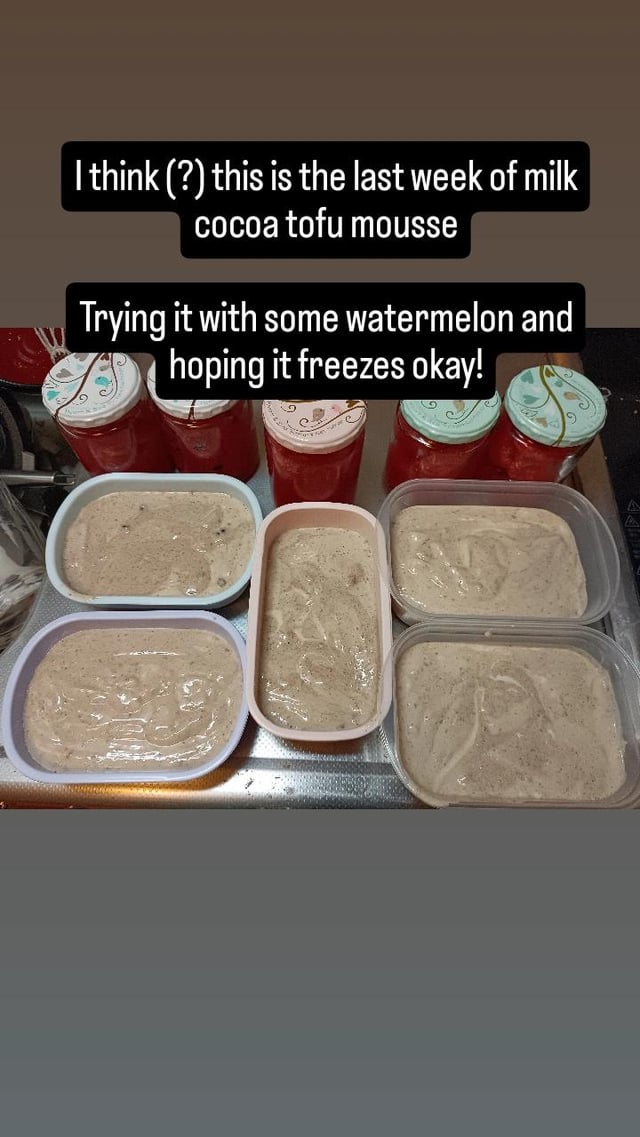 Q: How does one mousse a tofu? A: By asking it nicely. And also chucking it into a blender with protein powder and spices. The egg and oil are a separate post walk breakfast food. You will be upset if you blend a raw egg into this.