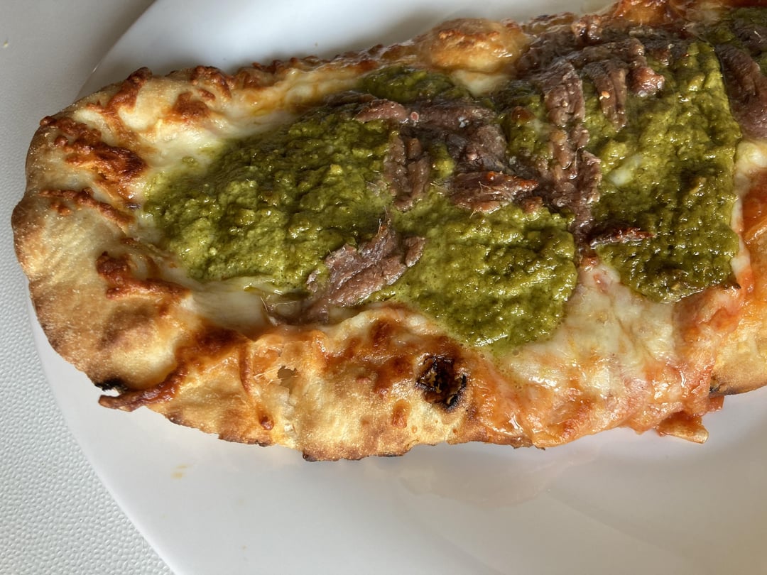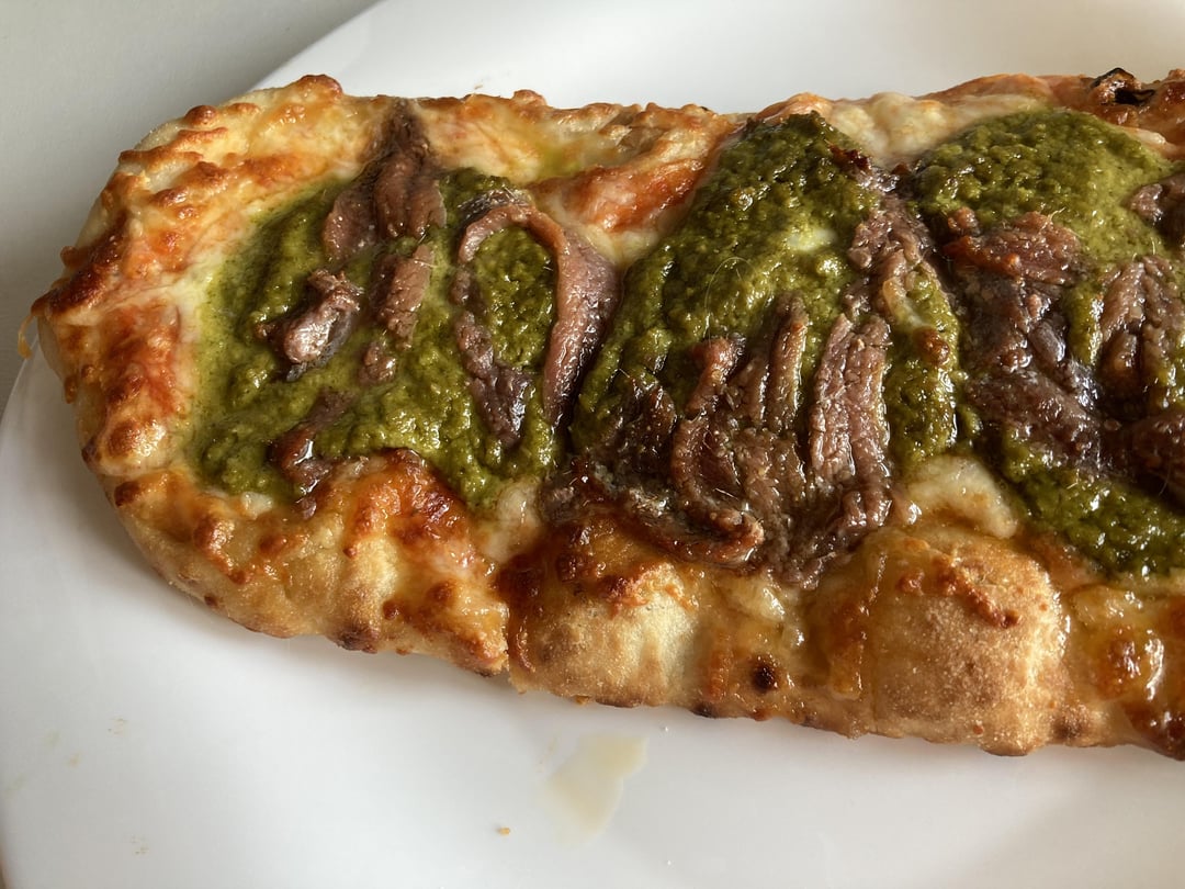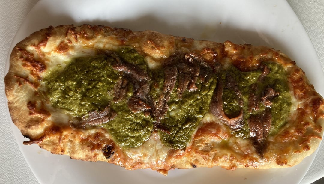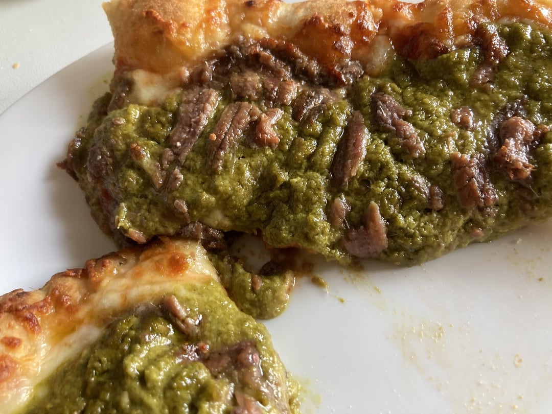 Halfway decent pesto and beef flatbread, not a pizza though lol