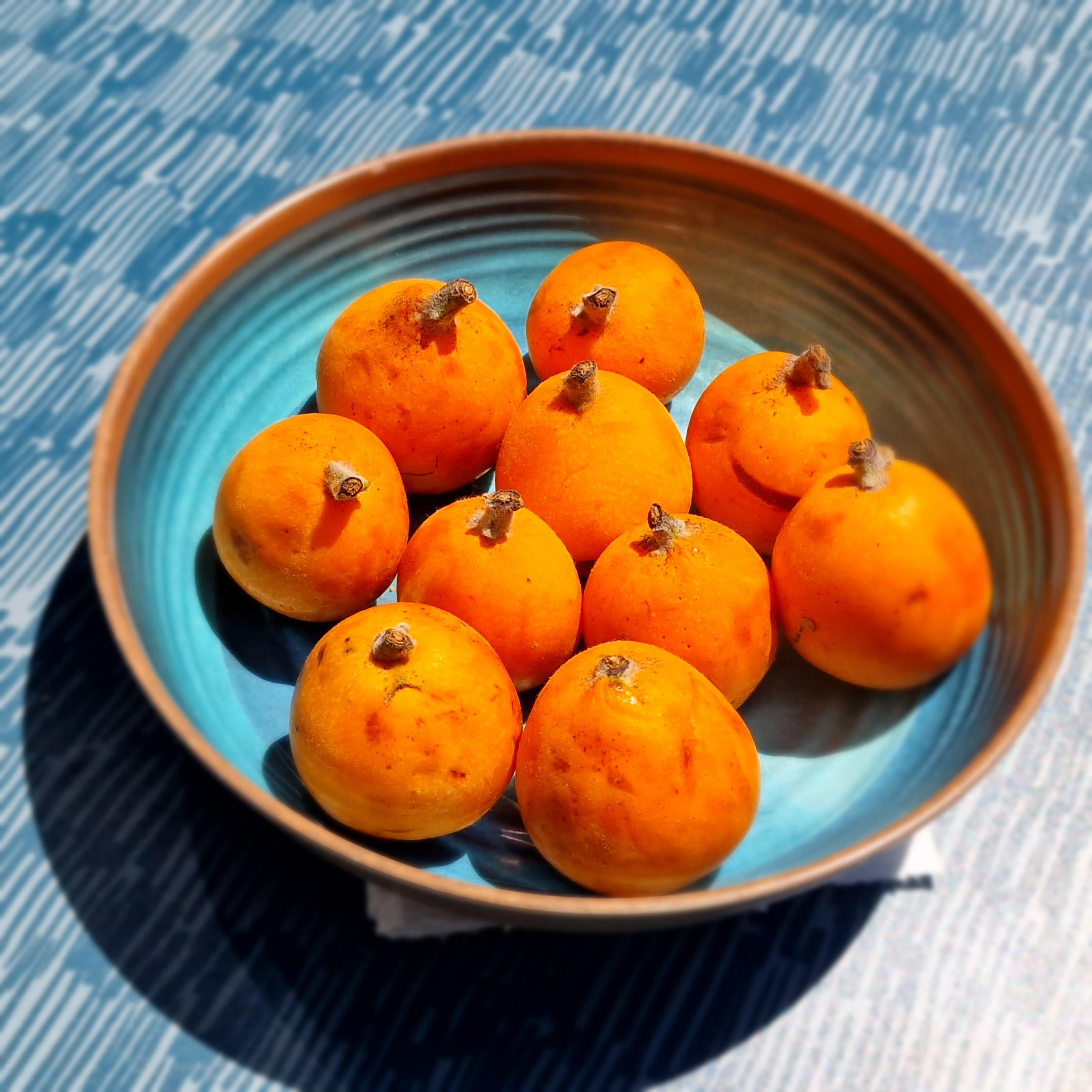 Pic is of my Medlars , bletting away in the Portuguese sunshine.