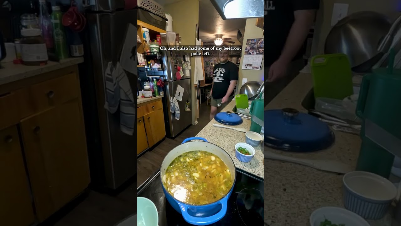 yo yo yo yo Yoo this soup I don’t remember where it was from but I’ve been reading lots of cookbooks um on Libby and uh using the library app and saving them for later and this is a good one my friend Olivia came over oh there’s my friend Annie hello Annie um and then I was cooking it up and then my friend Olivia came over and we had a nice nice little hang dinner um but this is a delicious these were big old beans I did do Rancho Gordo oh and I also had some of my beetro poke left uh so that was our little side um huge part of this was yeah blending up some of the beans to add a little a little depth in there and it really worked I honestly maybe should have done more beans I don’t know I’m I’m really happy with it this was delicious and it was also my lunches this week so that was good and uh nice to see Olivia thanks for coming over okay bye everybody