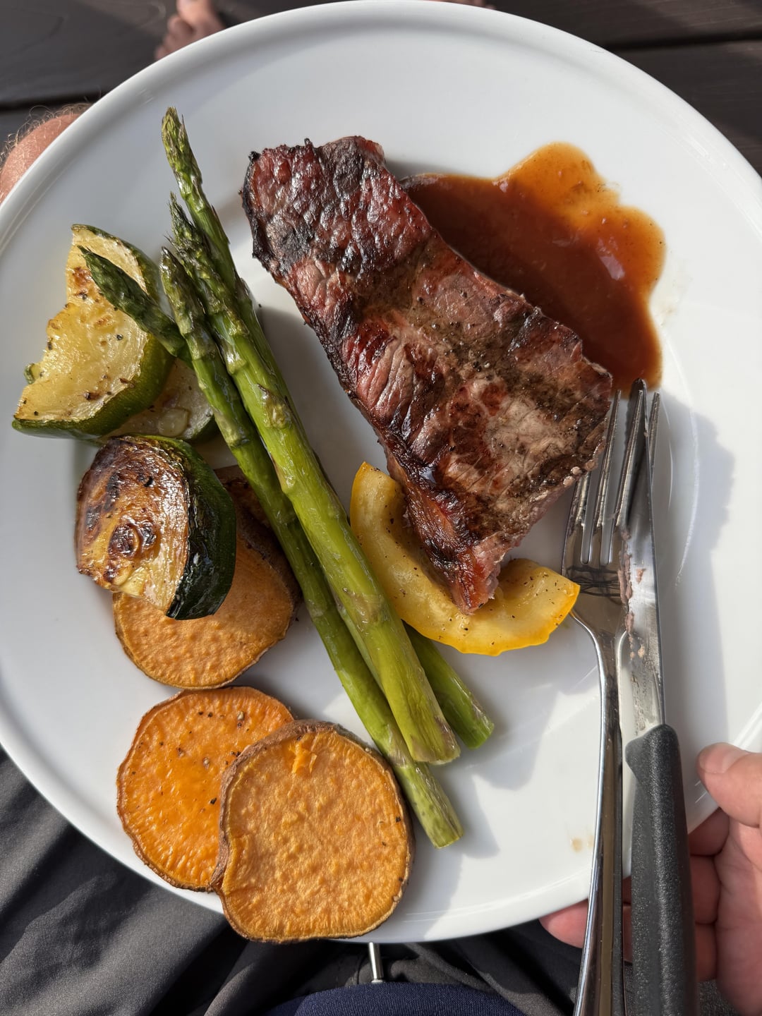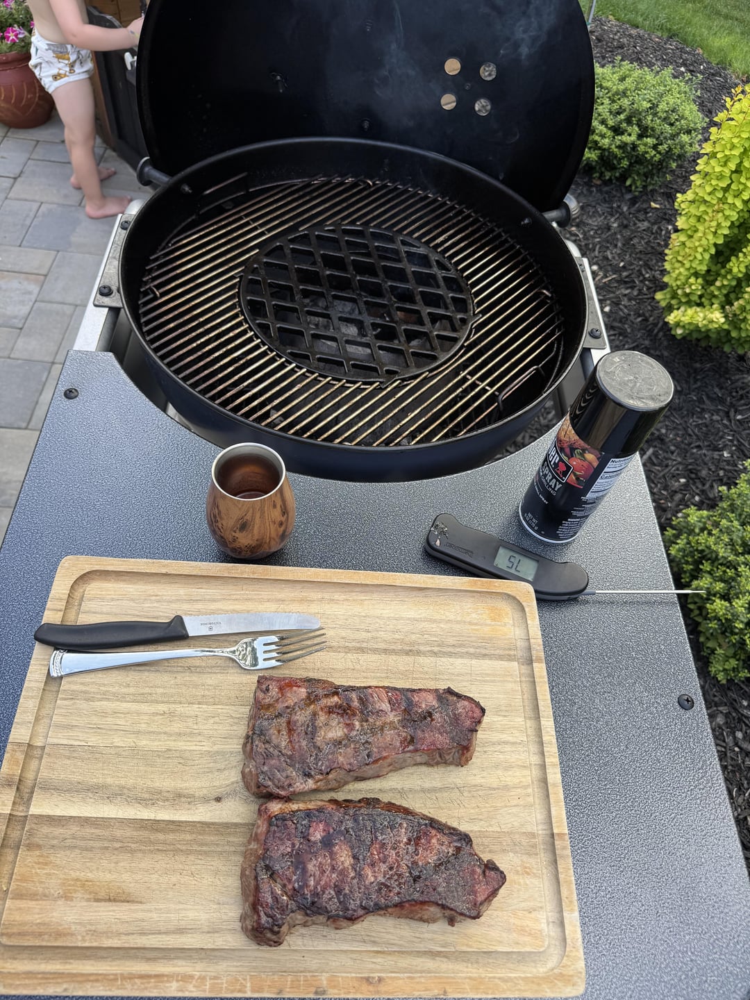 That vortex gets HOT. I seared the NY strips a little too much on one side and not enough on the other. Finished on indirect heat, though to be honest they were pretty much done after that initial sear. SMH. Was still enjoyable to eat, but below my cooking standard.