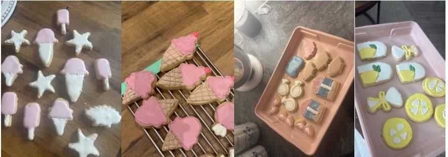 Just wanted to show my cookie progress, just finished my 4th set and I’m slowly getting there. Im not artistic whatsoever so I decided to invest a projector that arrives Monday! My first set I’m actually giving to someone is the lemons which I’ve just finished today… not 100% happy with them but it’s all progress!