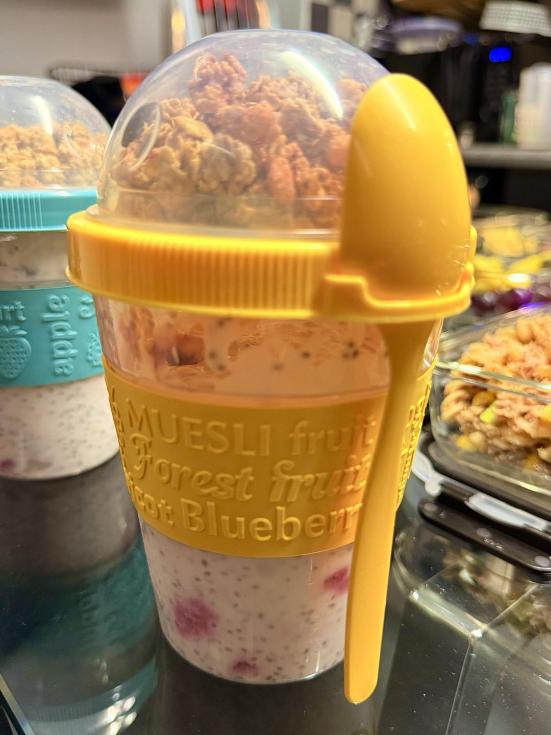 Often get asked about my Tupperware so the glass ones are Igluy off Amazon, and the breakfast pots are off Amazon as well but I have no idea what the brand was – there are many just by searching breakfast pots 🙂