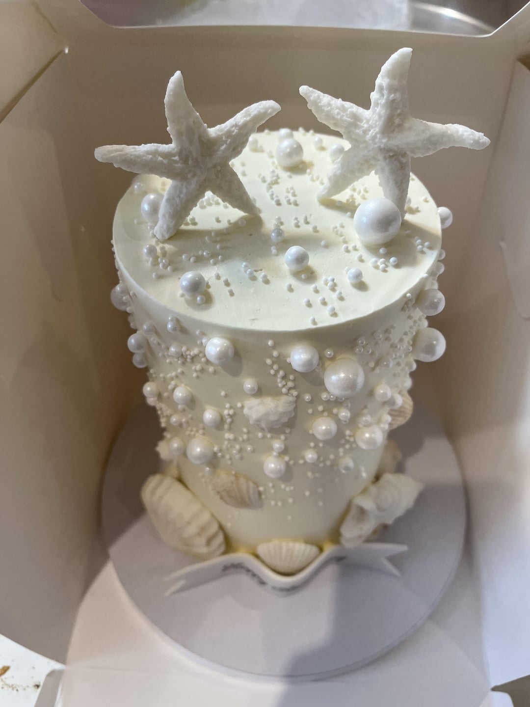 It’s stunning and looks amazing tasting , I love beach themes and pearls 😍 happy anniversary