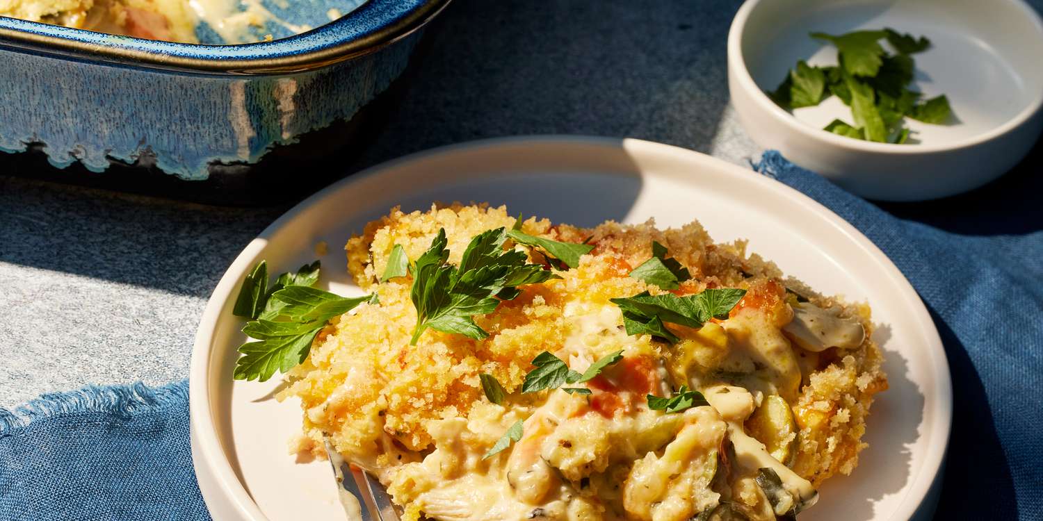“This zucchini chicken casserole is creamy and herbaceous, packed with fresh fork-tender vegetables and shredded chicken breast. The herbs make this dish feel light and fresh, while the cheese on top forms a golden-brown melty crust. This casserole is delicious for a weeknight dinner.” —Amanda Holstein