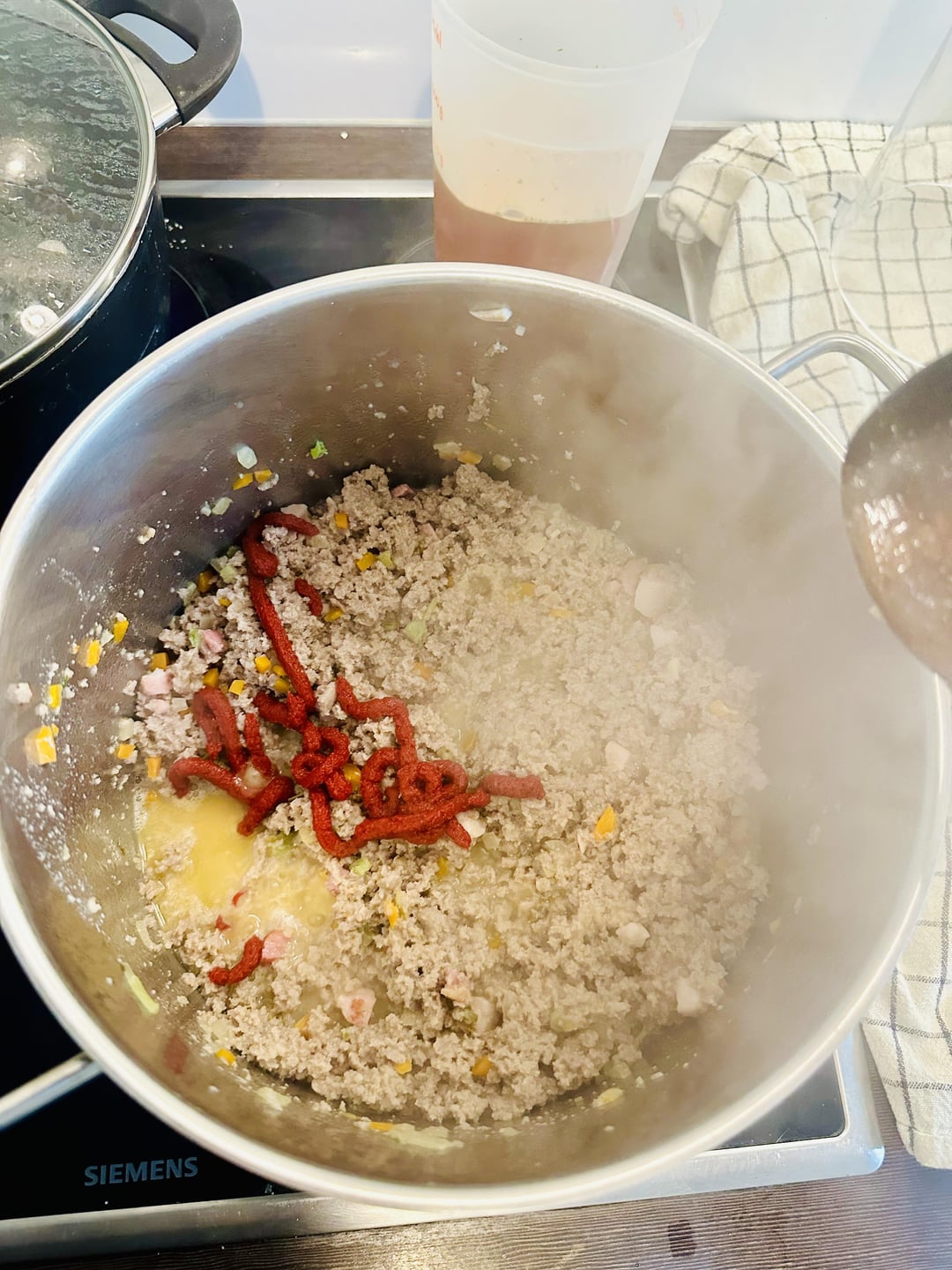 - A splash of milk – repeatedly bring the milk to a boil, skimming off the skin each time and stirring only the skin into the sauce