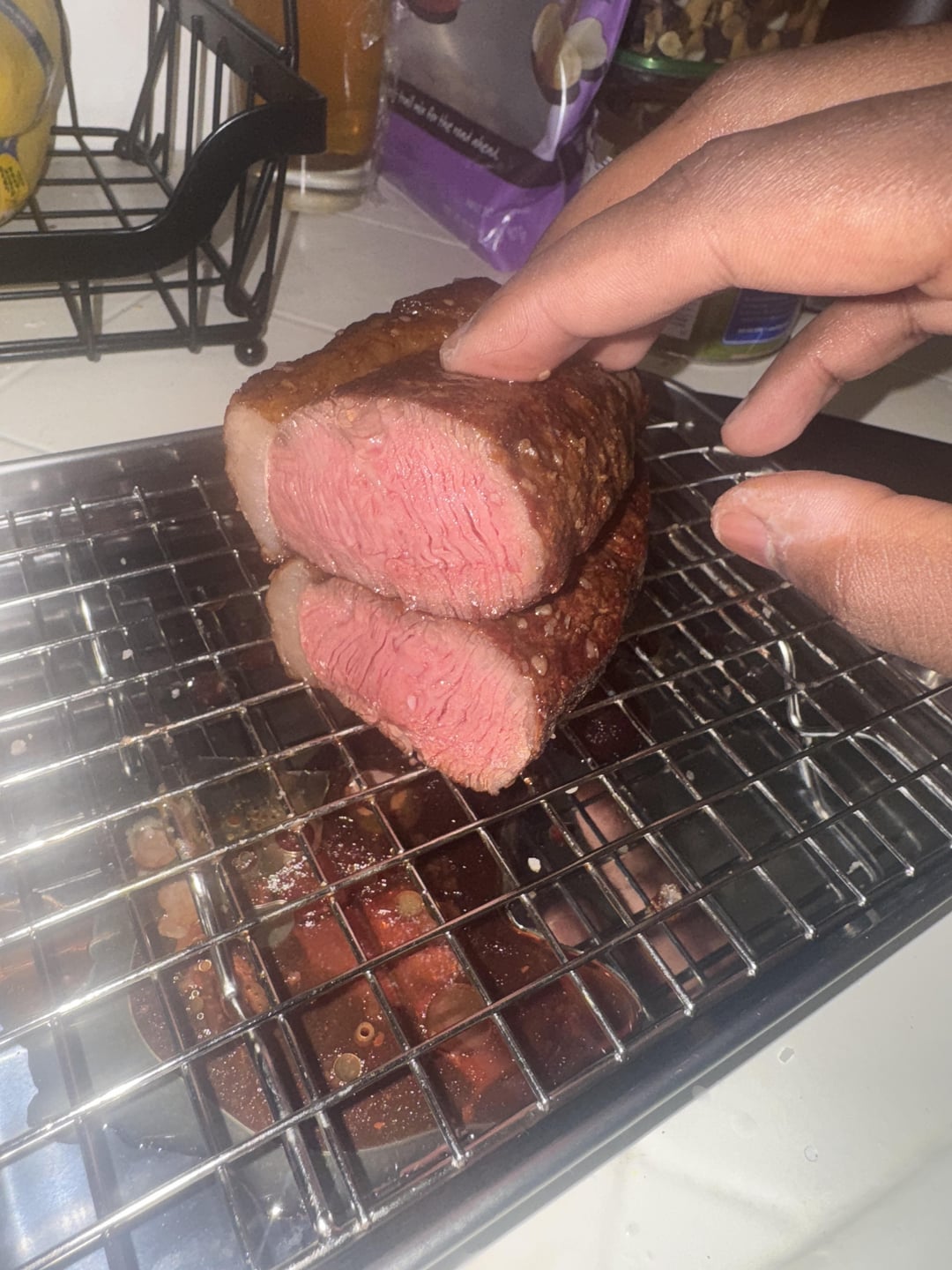 I now see the light, and I’m never going back. So much more affordable than strip or ribeye of equal or even lesser quality (I paid $13 for this particular steak at $20/lb while it’s not unusual in my area for Choice ribeye to be >$24/lb ). I managed to cook this beaut to a near perfect medium rare. It was so tender and delicious, it’s found a spot in my regular rotation. Reverse seared on a stainless steel pan. Internal temp was ~130 two minutes after I took it off the heat. All around, it was certainly one of the best steaks I’ve ever cooked