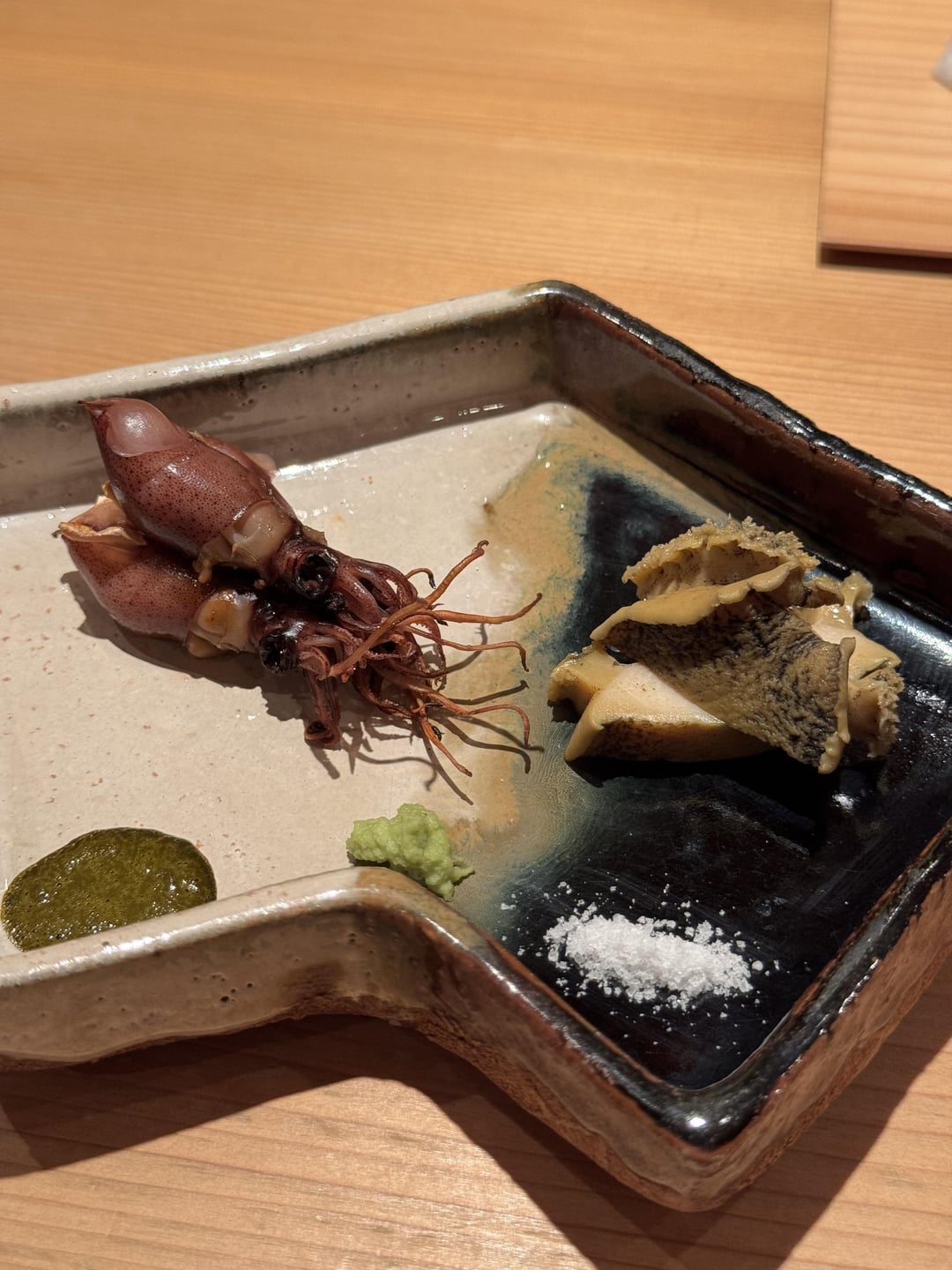 • Ankimo – Served as a paste with pickles. Delicious. Pro tip: the locals didn't eat this in one bite, but instead used it between sushi pieces as a palate cleanser. I tried this and found it made the dish and the pacing much more enjoyable.