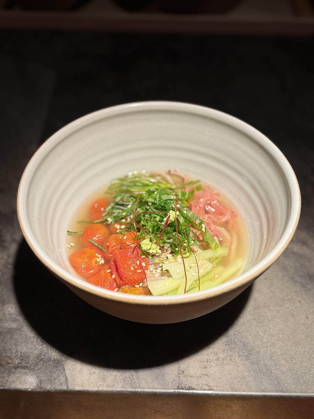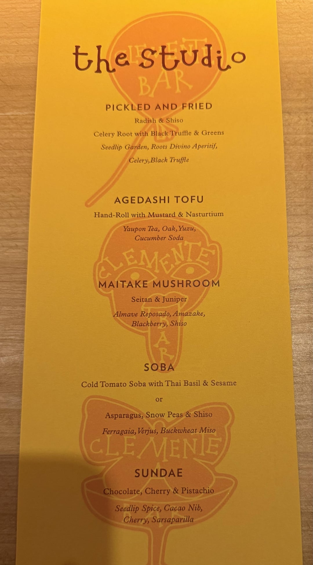 The vegan tasting menu took my breath away. The first bite of each course drew a gasp, grin, and giggle as I raced to make elated eye contact with the chefs. I’ve dined at most vegan restaurants with tasting menus in the country, and The Studio is clearly a cut above the rest in depth and refinement of flavor. The humble deep-fried celery root topped with black truffle was one of my favorite bites of the year, the seitan and mushroom skewer seared on a Japanese water grill burst with unbelievable amounts of smokey umami, the soba noodles soaked in a cold tomato-based broth steeped with Thai basil I couldn’t slurp up fast enough, and I wake up every morning craving their chocolate cherry sundae. If nothing else, you must come for a drink and desert at the adjoining bar lounge. Please note: all this praise is coming from someone who has seldom ever enjoyed (let alone loved) deep-fried dishes, celery root, seitan, cold soups, nor has ever had the sweet tooth required to get through a desert comfortably.
