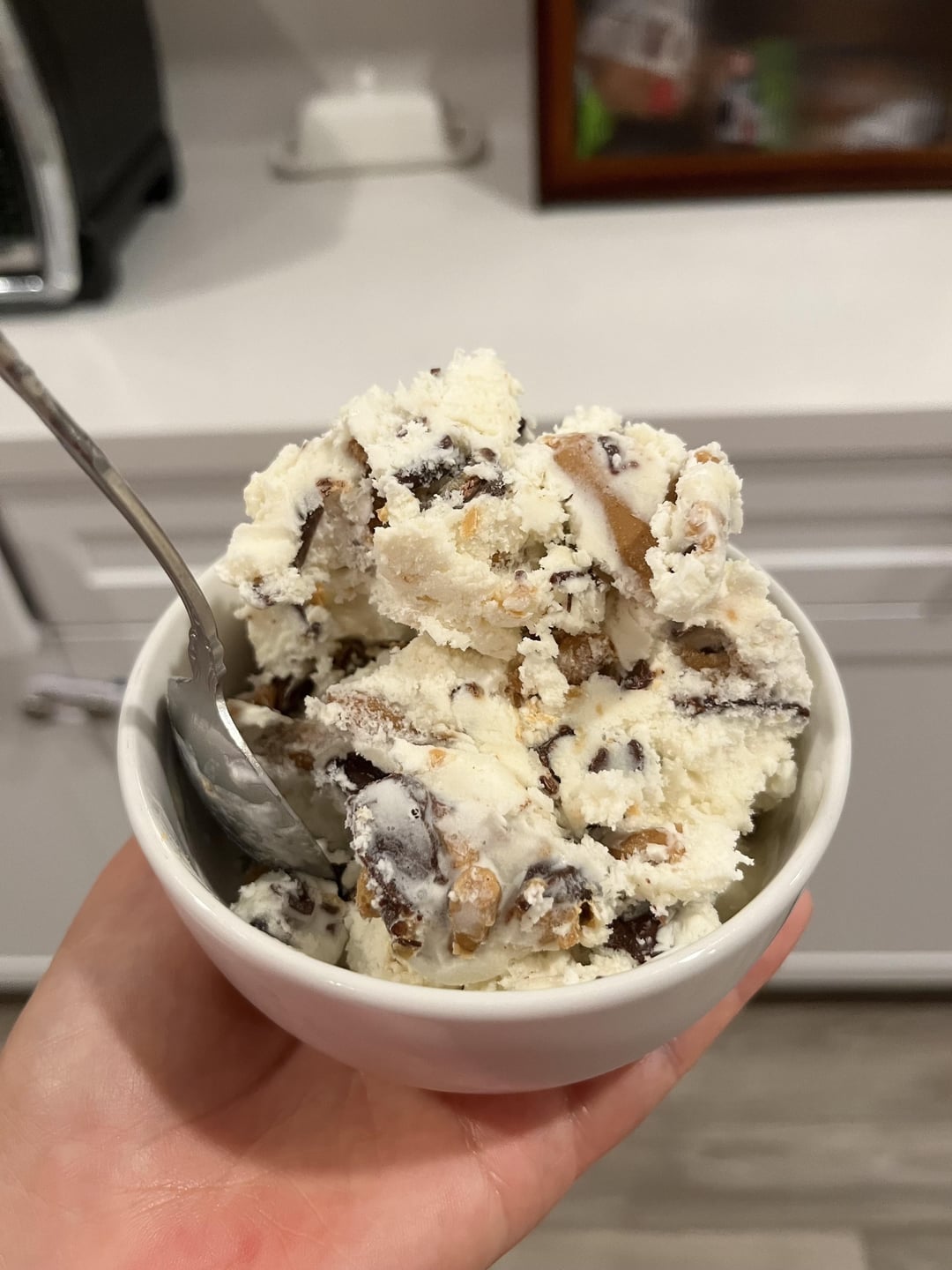 Recently got an attachment for my KitchenAid and this was my first attempt making ice cream. I made a vanilla base with peanut butter cups and a lot of peanut butter and chocolate swirls throughout. It was absolutely delicious and I’m looking forward to making some different flavors.