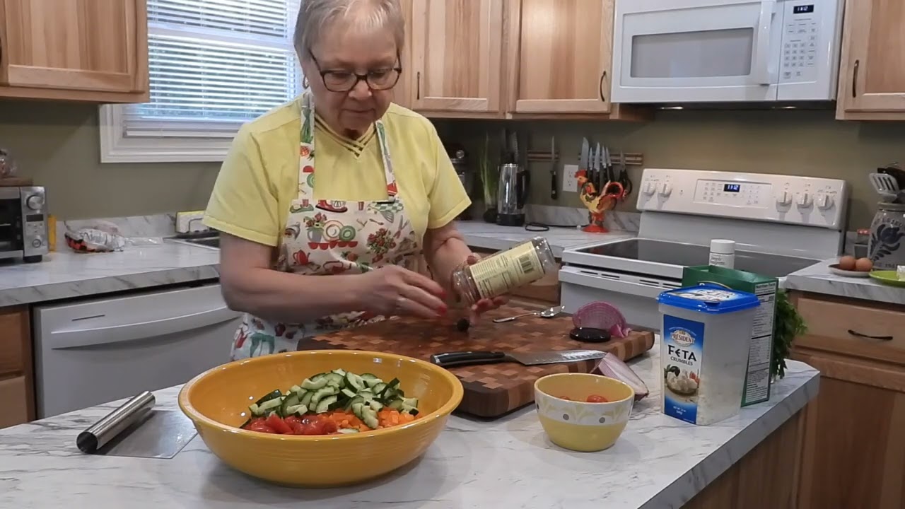[Music] Good afternoon and welcome. I’m Susan. Glad you could be with me. Today we’re doing something. Well, we’re going to do a pasta salad. You know, tomorrow is the 4th of July, so we’re going to throw some chicken on the grill. And I thought I’d fix a pasta salad. And um thought that’d be kind of tasty. Now, we’re going to do a Greek pasta salad. Normally, I do an Italian pasta salad, but like I said, we’re going to do something different today. Now, I’ve already cooked the rotini, and this happens to be a vegetable rotini that I bought at the store. It’s with carrots, tomato, and spinach. So, it’s not your regular I don’t know. I guess they dye the dough somehow. But first, we’re going to going to cut up um red or purple onion, whatever you call it. Going to cut up some. I’ve got my bowl ready. Right now, I’ve got my cooked pasta draining in the sink. We don’t want it too watery. Tilly sees that I’m doing something on the counter that might be advantageous to her. Going to give this just I don’t know. I think we’ll do that’s probably that’s probably about a cup. Get my bench scraper here. I don’t know about um how you’re doing as far as temperature wise goes, but boy, we’ve got some hot water or some hot water got some heat coming. And I don’t take heat well anymore. Seems like the older I get, the less I take heat and cold. So, there you have it. Now, we’re going to cut up some red pepper. Going to dice this up. And I’ve got a yellow pepper or an orange one, too. You can use um you can use a green, but I think it’s a little too bitter for this. There’s a black spot. But I don’t know what it is, but we’re going to get rid of it. Now, I will tell you, when you cut up peppers, if you cut up, put the uh inside up toward your knife, it’s easier to cut and it’s easier on the knife blade. Just a little trick I thought I’d share with you. But we’ll get this one cut up. You know, I watch um I watch a lot of the YouTube videos and some of the women on there are just fantastic. And they do uh one thing that’s got me baffled. And I think that’s uh how you do like 30 freezer meals in one day. Now, that takes some planning. And I guess I I guess I really don’t need to do that. There’s just the two of us. So, you know, if there’s no meal plan here, there’s always uh um lunch meat for a sandwich. Having a sandwich for supper is not all bad. Will doesn’t mind it. I hope um hope you’re going to have a safe fourth. We are not going anywhere except for the backyard. We may not do that if it’s not uh cool enough. Okay, we’re going to get this in. Got a red pepper. One thing is colorful. Now, let’s do let’s do an orange pepper. And we’ve got tomatoes and cucumbers. And I have something that I don’t normally buy. And that’s a salad dressing that’s already made up for this. This is probably There we go. I normally like to make my salad dressings, but I was going through the store the other day and I happened to go down the uh the salad dressing aisle. Will’s telling me to speak up louder. You know, it seems like um I think with my Parkinson’s I just don’t talk as loud as I used to cuz I used to uh nobody had trouble hearing me. But things change, don’t they? We’re almost done with this and we’ll go on to to something else. Our garden is starting to really produce and we are going to have what are we going to have? Jalapenos, green peppers. Did we buy any red peppers? Well, that’s green pepper turnurning, isn’t it? I can’t remember what all we bought to plant beets. We’ve got beets coming up. We’re going to have to find recipes for 30 lbs of beets. I probably exaggerate there, but that’s freeze-dried. Freeze freeze-dried freeze-dried beets are really good. In fact, we’ve got a lot of uh freeze-dried fruits and vegetables downstairs. And it’s amazing how how they retain their their flavor. I was surprised when we got the freeze dryer that they retained their flavor so well. Okay. Now, I’ve got some little These are grape tomatoes. I’m going to cut these in half and then we’ll just throw them in there. Isn’t this fun watching me cut up vegetables? You’re such a cutup anyway. Oh, thank you. Such a cutup. We um have a kayak and we’re going on vacation. Not pretty soon. I don’t know when exactly, but we’re going over to um what is it? Abe Lincoln. Abraham Lincoln State Park in Mandan, North Dakota. We’re meeting some friends over there. So, we’re taking our kayak with us. because there’s a river right there. And uh I don’t know if you guys like to kayak, if you like to swim, uh tube. What else can you do in the lake? Fish. Fish. Oh my gosh. Yes. Fish. Ski. Water. Ski. Oh. Oh, we don’t skis. We don’t do that cuz we don’t have anything motorized. We just have the kayak which is or an arm motorized. Okay, let’s get these in there. Looks good, huh? Now I’m going to do a cucumber. I think I’m going to cut this up and see what happens. I’ve washed the cucumber already. Going to kind of score it. This will make it look a little nicer in the bowl. Although, this skin is really hard. Oh well, we’ll get her done here. I love cucumbers, but I’m going to take the seeds out because I think it it gets too watery if you don’t remove the seeds. And I you know, otherwise you can buy an English cucumber, too, and just cut it up. But like the old adage goes, use what you have. Hey, which it reminds me, well, I of course I don’t know how it reminds me, but new subscribers, I want to welcome you. I want to thank you. subscribers. Boy, oh boy. They’re what keeps me going because uh there are days when I have Parkinson’s can really kick your tush. And uh some days I just don’t feel like doing anything, but then I think, well, people have subscribed. I better do something nice. Get up and get to work. So, thanks for uh for getting me getting me moving. So,