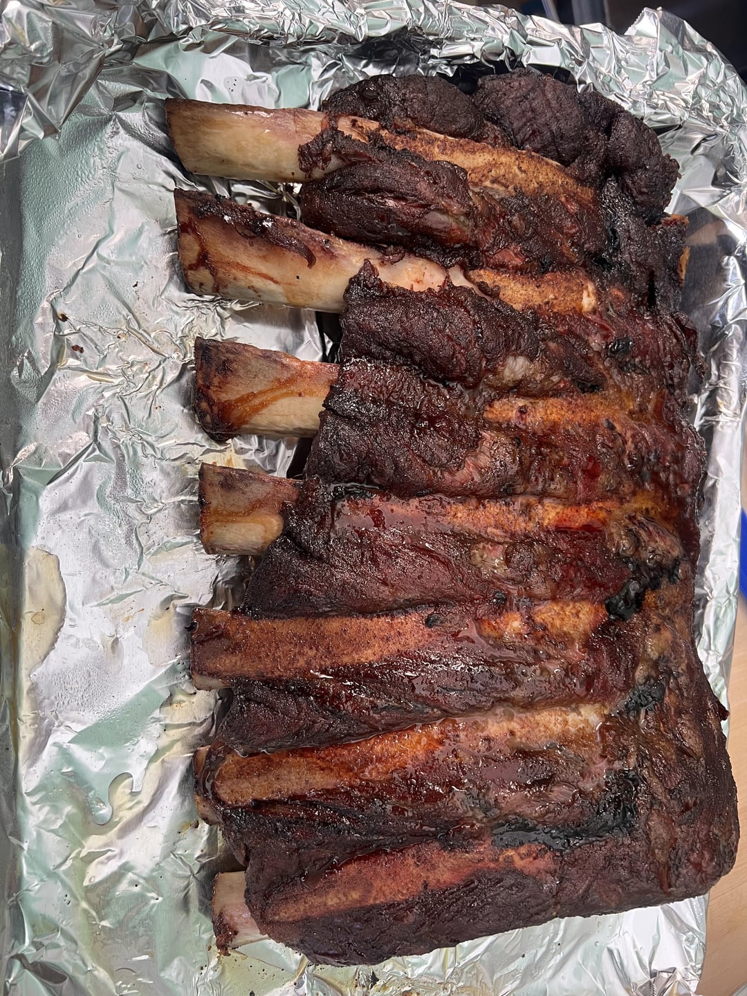 Costco struck my wallet again with Wagyu back ribs. They were a dollar more than the Choice ribs and I’d never done anything with wagyu before so I went light with Traeger’s beef rub soi wouldn’t overpower the meat, smoked on Costco pellets, wrapped with butcher paper at about 170. Made it to 203, rested in the fancy BBQ Blanket while we made sides, and then cut to the delicious results shown here. Needed a little bit extra salt, but came out amazing and gave us a night of left overs (did it with the water circulator/sous vide machine).