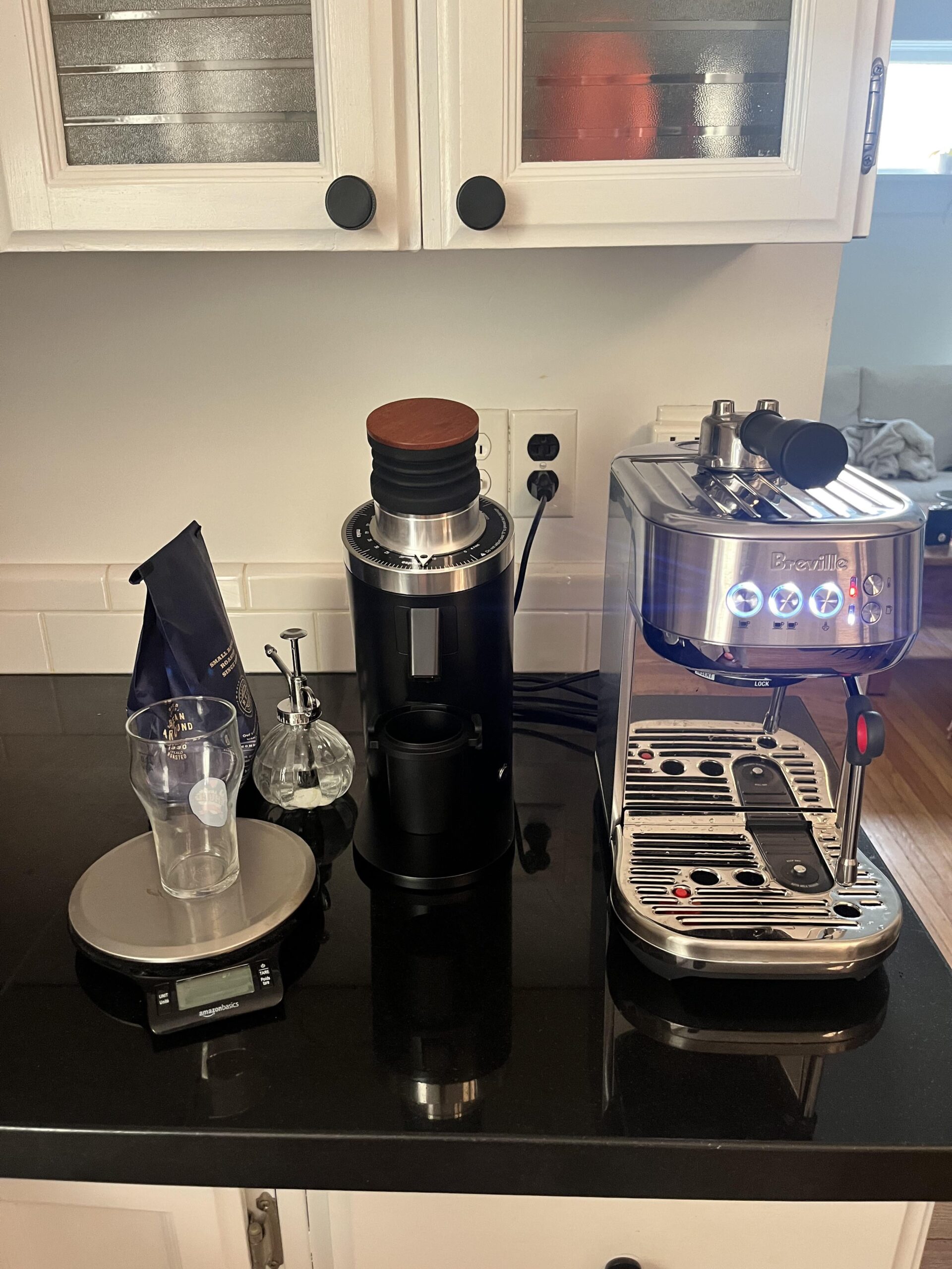 Still playing with dialing in the grind/tamp pressure but coming along! DF64 with Breville Bambino Plus, which I was lucky enough to get on a big sale.