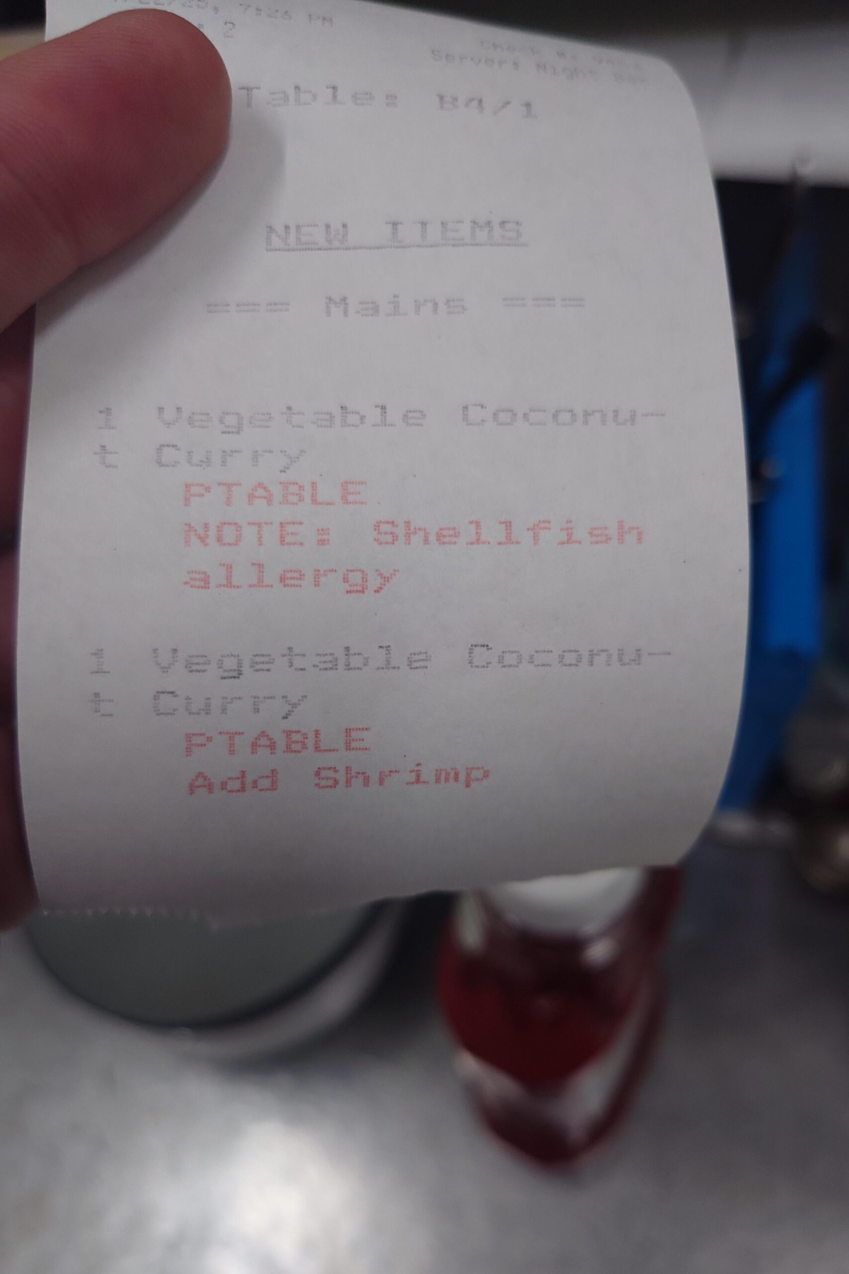 as a kid whose mom had a shellfish allergy, eating out was the only way I got to experience fish as a kid. probably not the case here but a potential alternative explanation for a ticket like this😎