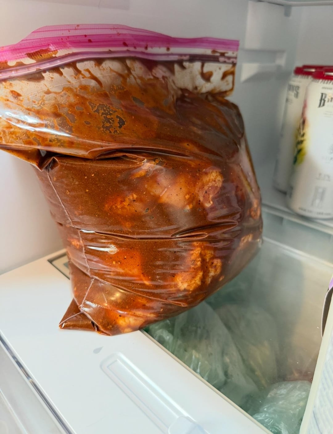 Chicken thighs marinaded in orange juice, soy sauce, lime juice, garlic, cumin, s+p, onion powder, honey, cilantro, and chipotle peppers in adobo sauce.