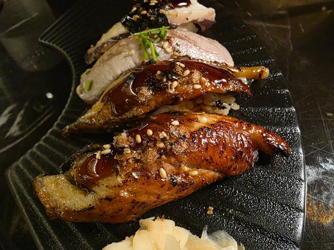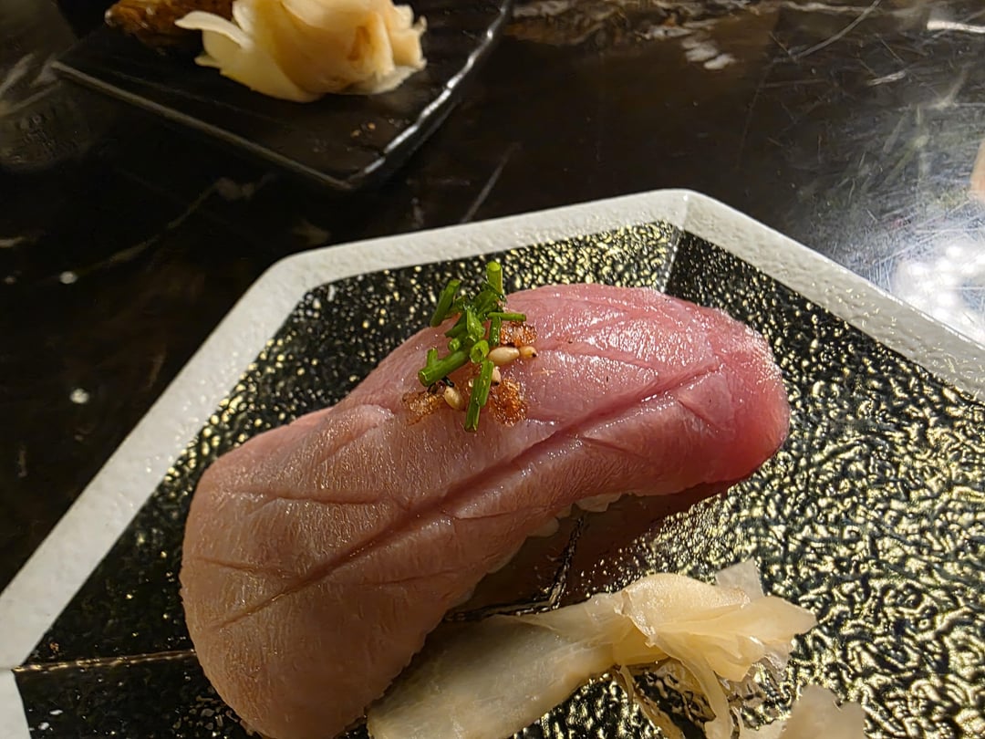 I’m a bit surprised that the garnish on some of the fish appears to be rice seasoning.