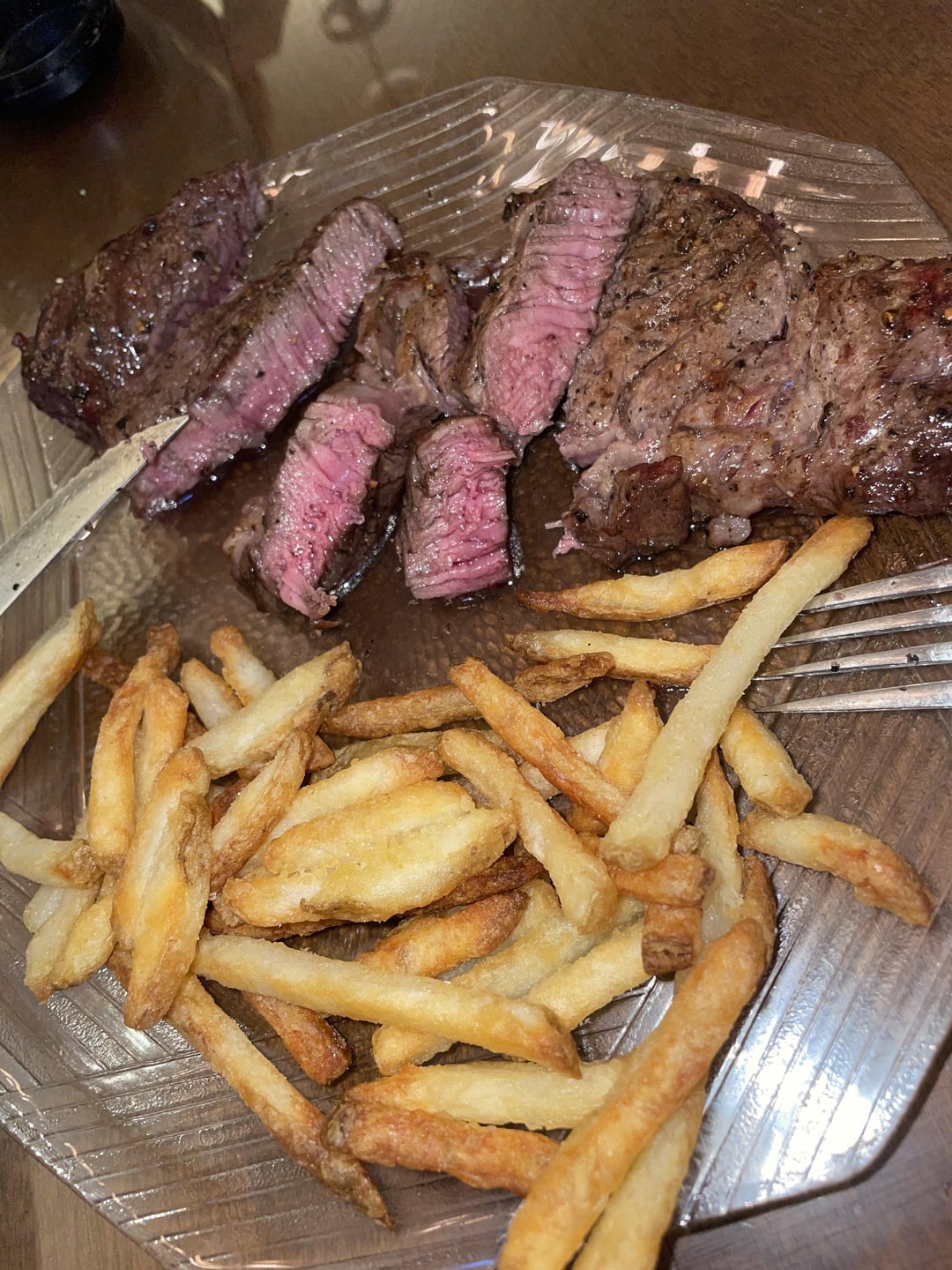 Need hotter cooking temp before placing meat in pan for better sear, but looks good. The French Fries, however, look really, really good! Care to share how you made them? Thanks in advance