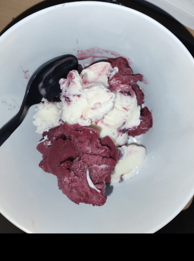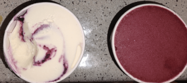 Jeni's Lemon and Blueberry Parfait is all lemon; even the pockets of pure blueberry swirl taste lemon. Haagen-Dazs Summer Blueberry and Lemon is all blueberry with little to no citrus. So I combined them for proper balance and together, they really do complement each other! I recommend this for anyone disappointed in the individual flavors for the same reason.