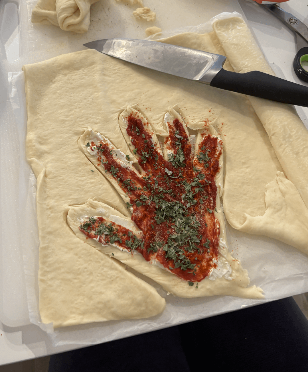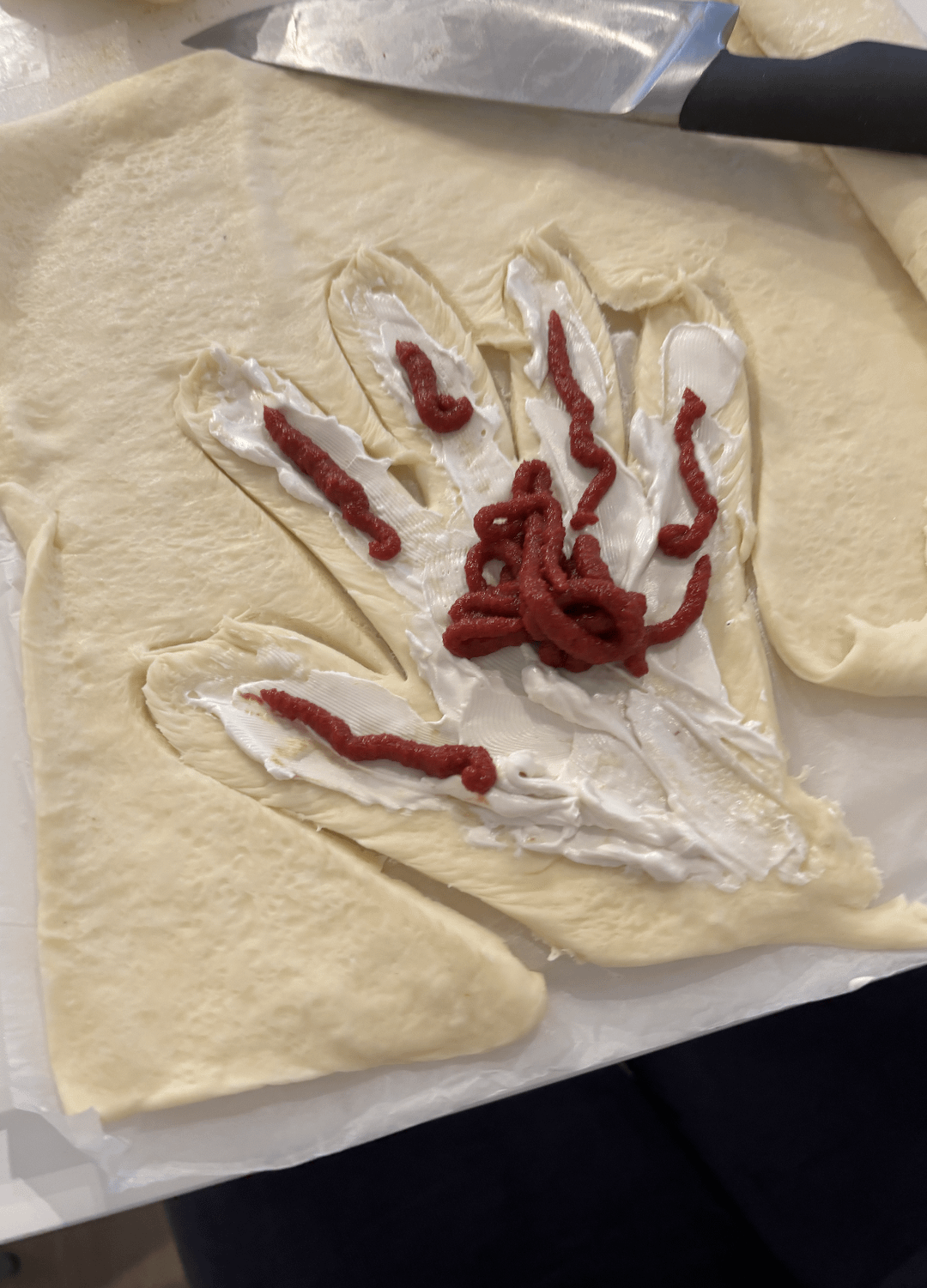 I made a arm in bread form with skin and pink inner bread and white skeleton for a party, well I was zombie so I munched on that. Thank God I brought the arm, the host well knowing my allergies had added that to everything.