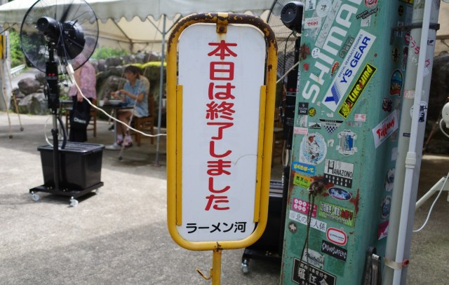 Called Ramen Kawa (“Ramen River”), this restaurant opens at 10 a.m. and closes at noon, and because there’s only a limited number of servings each day, it’s common for meals to sell out before closing. We’d heard from past visitors that it’s best to arrive at least an hour before opening, so we set out early and ended up arriving at 8:55 a.m. Even then, the parking lot was already fairly full, with cars and bikes bearing license plates from both inside and outside the prefecture, so we rushed over to add our name to the waiting list at the entrance to the restaurant.
