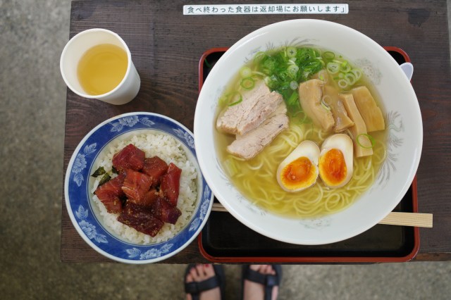 We were one of the people in line recently to visit the elusive restaurant, and when we got there we found there were only two items on the menu: Ramen (1,000 yen [US$6.83]) and a Ramen and Tuna Rice Bowl Set (2,000 yen).