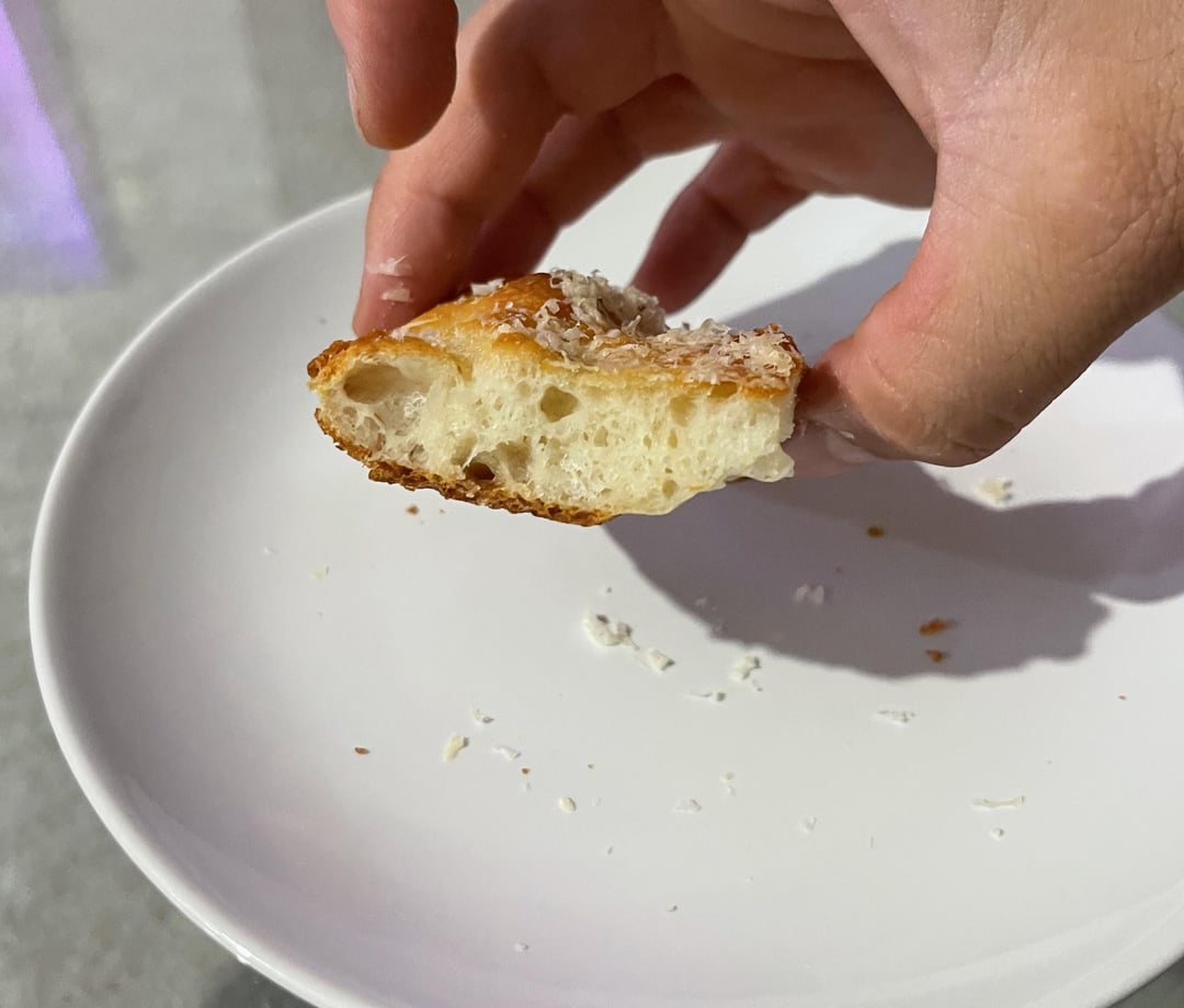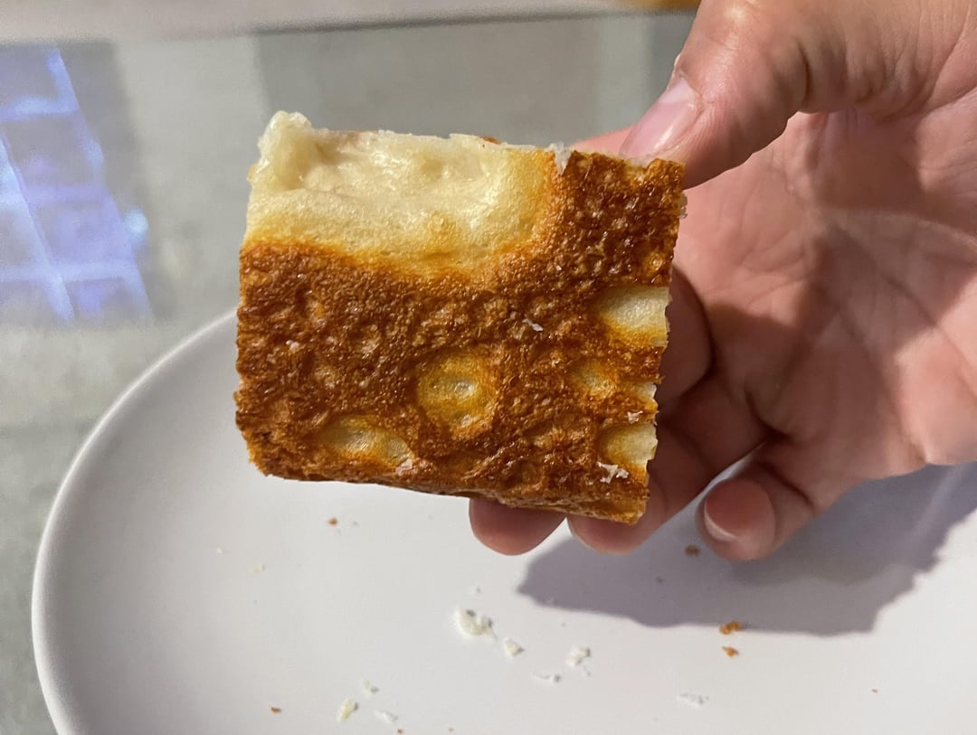 I’ve been experimenting with higher protein, low calorie bakes and finally landed on a focaccia style bread that comes in at just 195 calories per serving (or possibly 137 if I skip the oil next time). Ideally, Its the goal to go lower, but you gotta start somewhere. It’s fluffy, moist, and has a slight tang. It reminds me of a mix between focaccia and pão de queijo